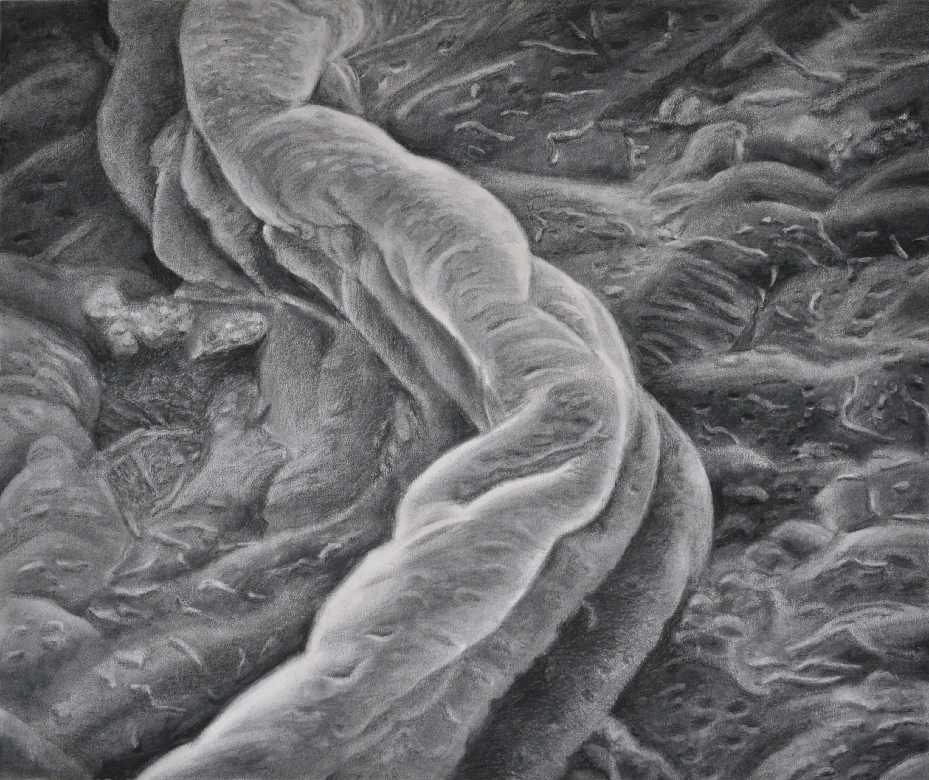Eric Vandamme (Mechelen, België)maakt voor zijn schilderijen en tekeningen gebruik van fotografisch beeldmateriaal van het internet, uit boeken en tijdschriften. De beelden zijn voor het merendeel afkomstig uit wetenschappelijke domeinen als genetica, microbiologie en nanotechnologie. Vandamme manipuleert ze met fotobewerkingsprogramma’s op de computer: hij verandert de uitsneden en de verhoudingen, vergroot details uit, herschikt de beelden en past de kleuren aan. Zo hercontextualiseert hij ze en construeert hij een nieuwe, vervreemdende werkelijkheid van bizarre stillevens en desolate landschappen die er eigenlijk geen zijn.