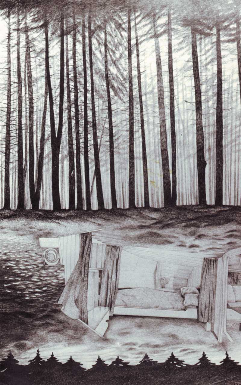 Bedstede Potlood Tekening Surreeel Papier Grijs