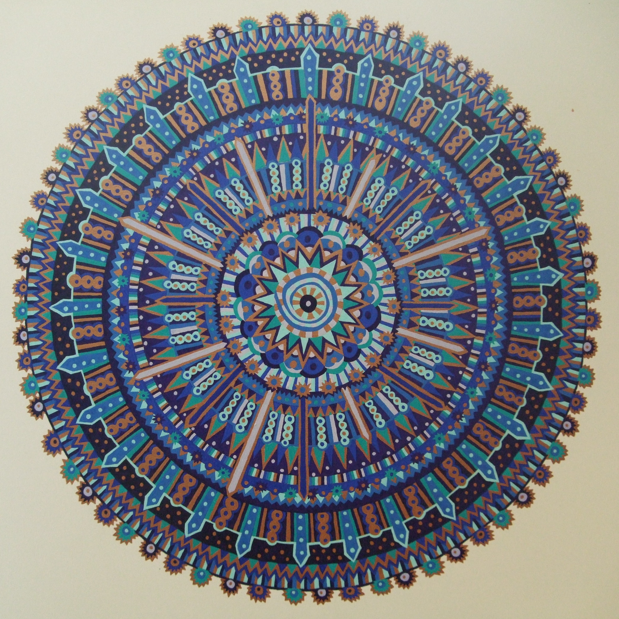 Blauw Brons Gouache Inkt Patroon Cirkel Mozaïek Mandala Turquoise Pentekening
