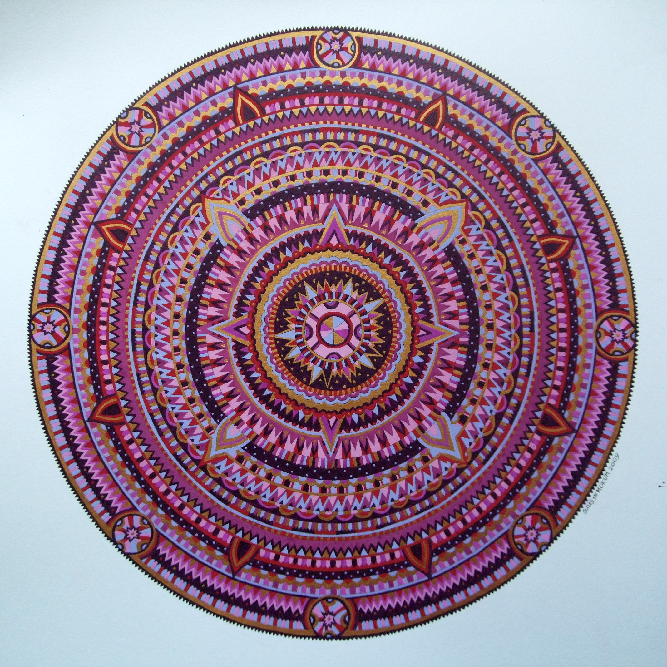 Goud Gouache Inkt Violet Patroon Cirkel Mozaïek Mandala Pentekening Mauve