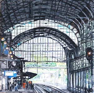 Iets in de buitenwereld intrigeert mij en door deze impressie uit te werken wordt zij blijvend deel van mijn binnenwereld. Laag na laag bouw ik aan de uiteindelijke vorm. Tijdens het werken komt er een stroom van associaties op gang. Het is een constant zoeken naar evenwicht tussen de verf en de andere materialen.