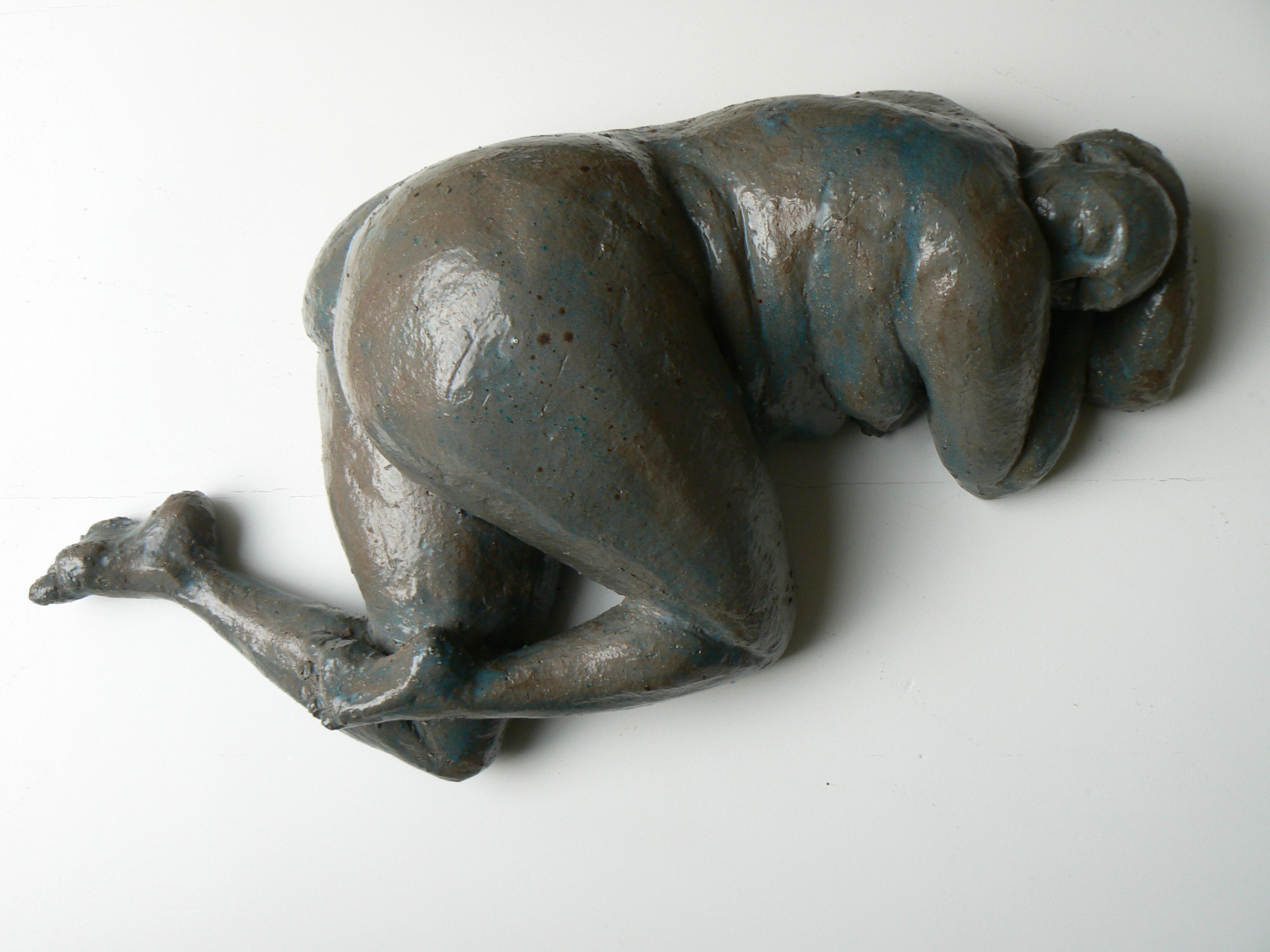 Dik liggend naakt, blauw/grijs geglazuurd