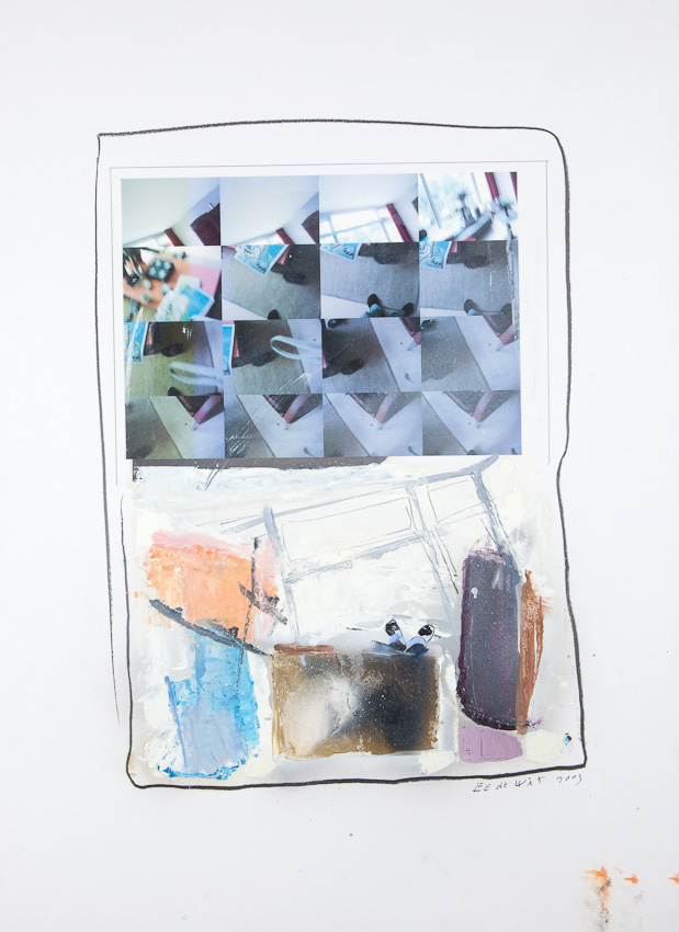 Het werk van Eelco E.de Wit(1955) gaat uit van de 2D 'werkelijkheid'.Plat gezegd plaatjes die kunnen variëren van folders, reproducties uit de kunstgeschiedenis en foto’s uit het leven die ongekende vrijheid bieden om z’n eigen 'ding' te maken.Van plaatje naar de verwezenlijking van een nieuw soort vanzelfsprekende Werkelijkheid, waarbij de bronnen soms duidelijk zijn, maar daarmee ook de Verschillen.Conceptueel (idee en verhaal) komen er spelenderwijs steeds meer lagen in het werk.