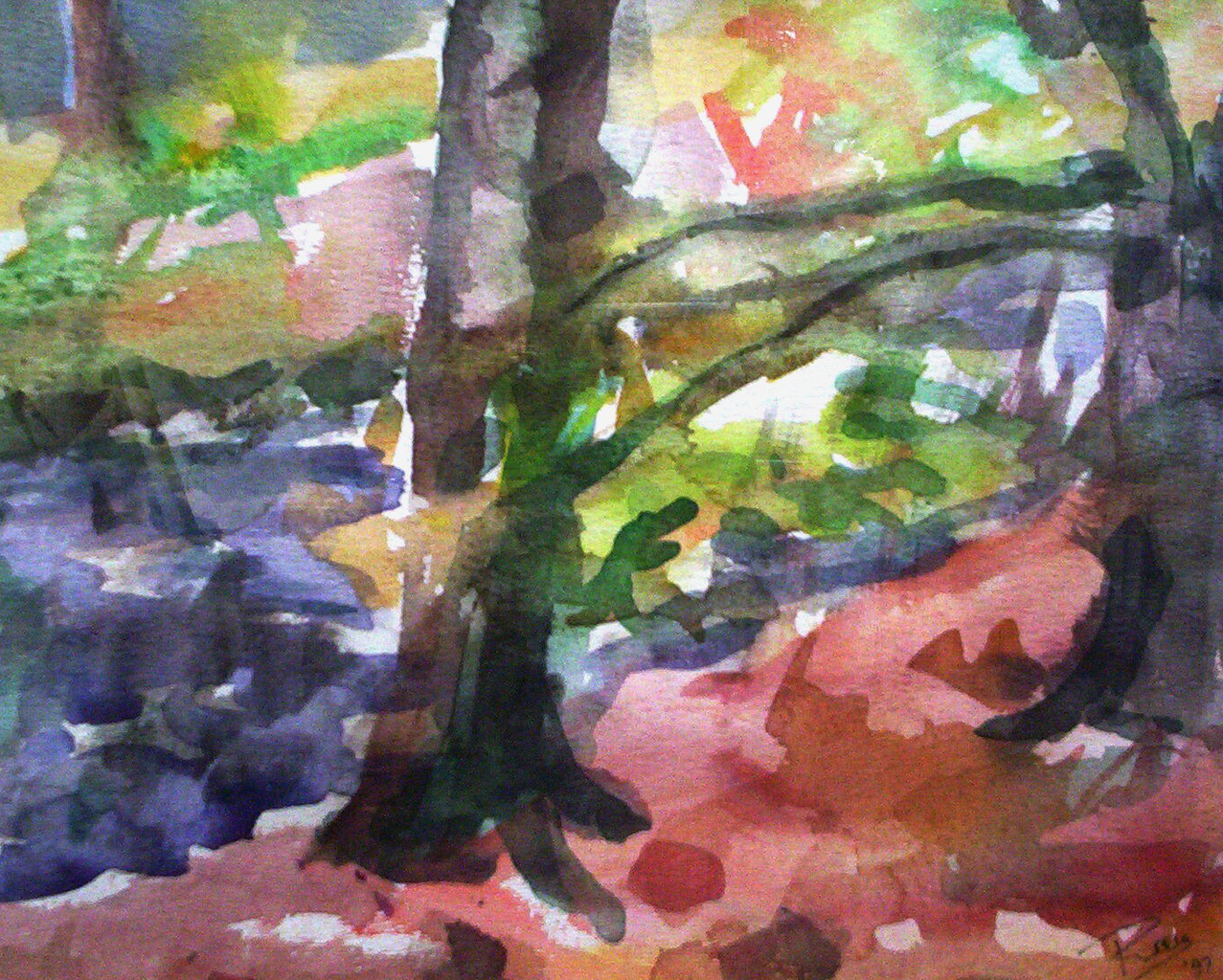 Het Rembrandtpark ligt bij mij om de hoek en is daarom een dankbare plek om op het juiste moment van de dag vast te leggen. Deze vluchtige en grove impressie geeft de stemmige sfeer weer van een vroege herfstavond.