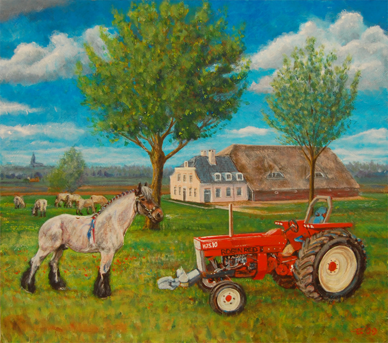 Tractor Horse Trekker Trek Paard Boerderij Farm Acrylic Contemporary Realism Paint Acryl Hedendaags Realisme Verf Frank Schutten