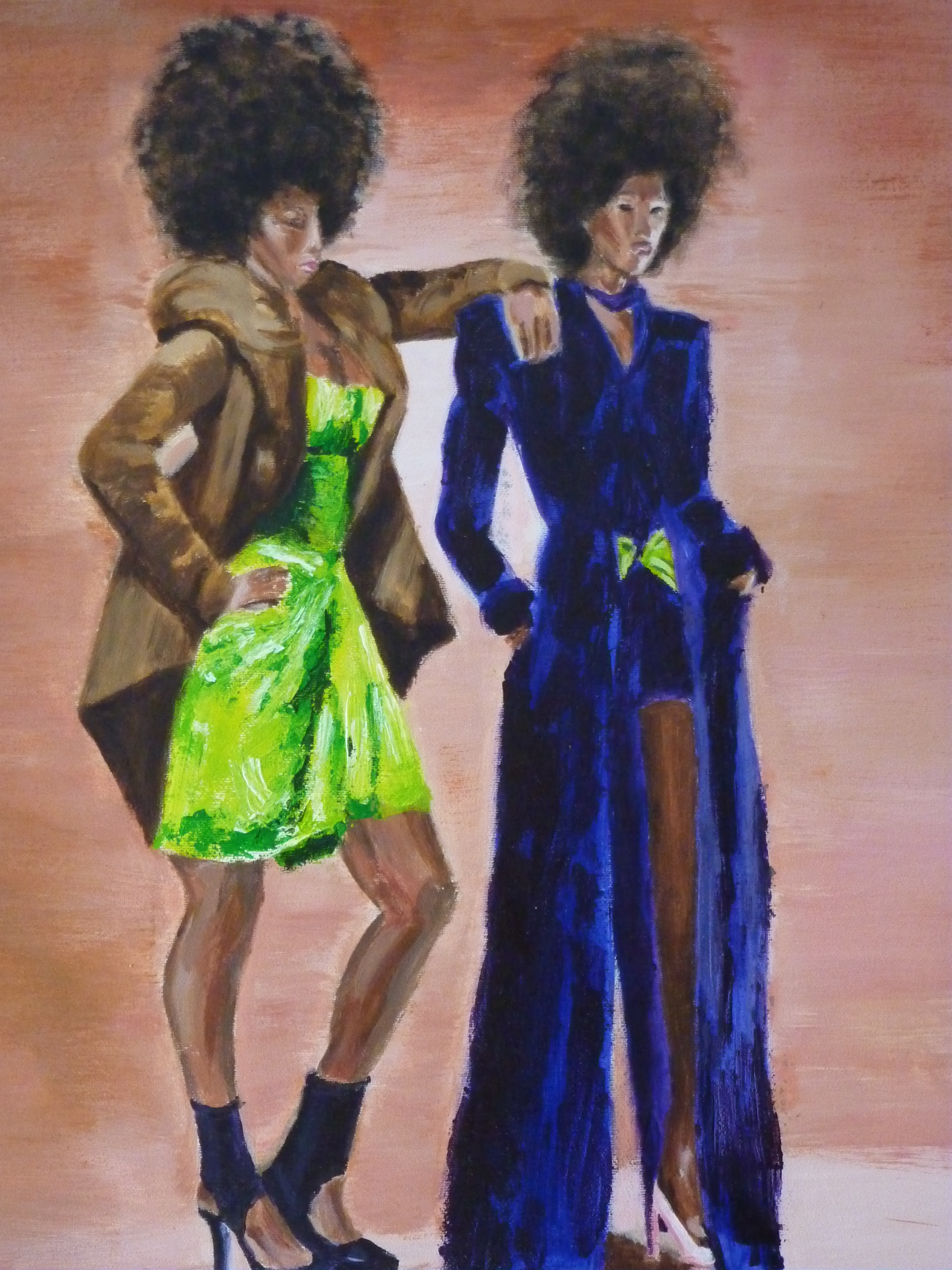 Een stoer schilderij van 2 krachtige donkere modellen.