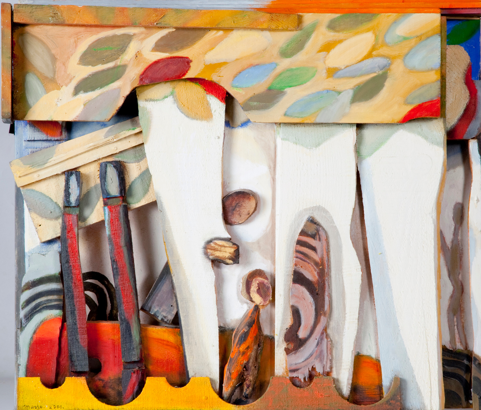 Compositie van hout en olieverf