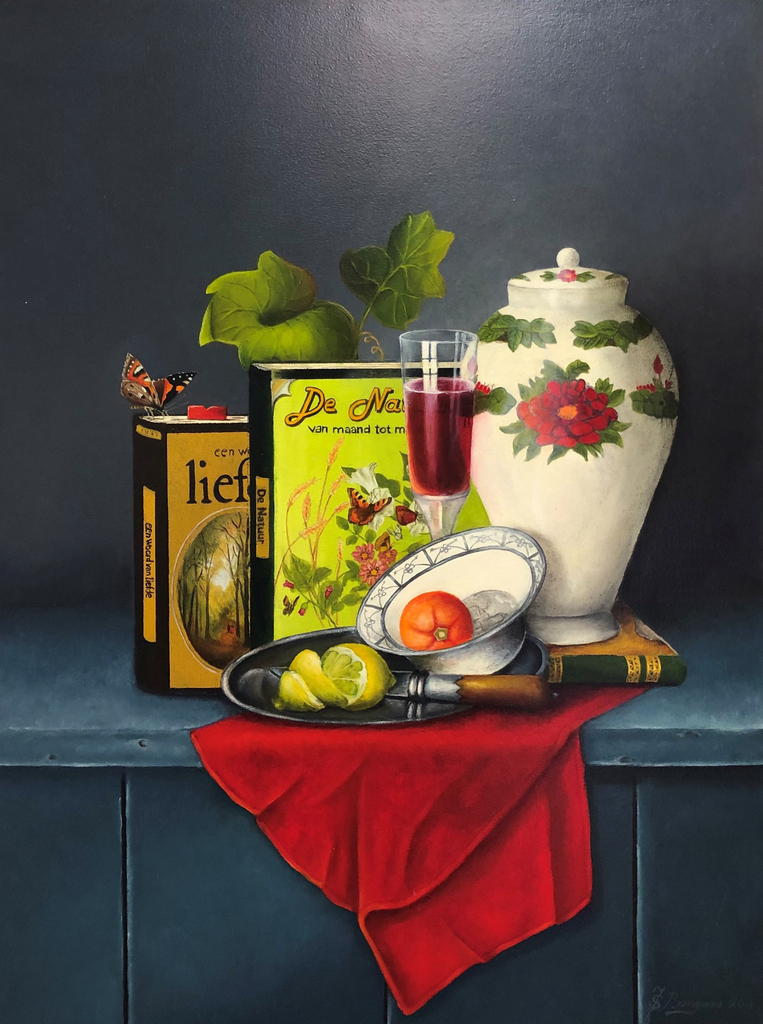 Mijn werk bestaat uit realistische stillevens met composities die een impressie weergeven uit het verleden, maar ook uit het huidige leven.
