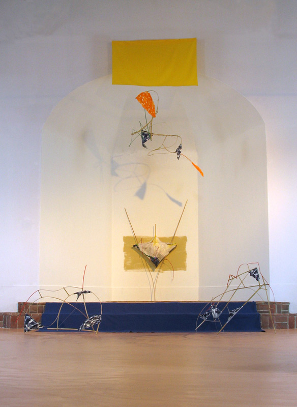 Installatie uitgevoerd tijdens de open atelierroute van Kunst aan Huis in het Lauwersland. De route had als thema: Landverwanten. Uitgevoerd in het kunstcentrum Ruimtela te Houwerzijl.
