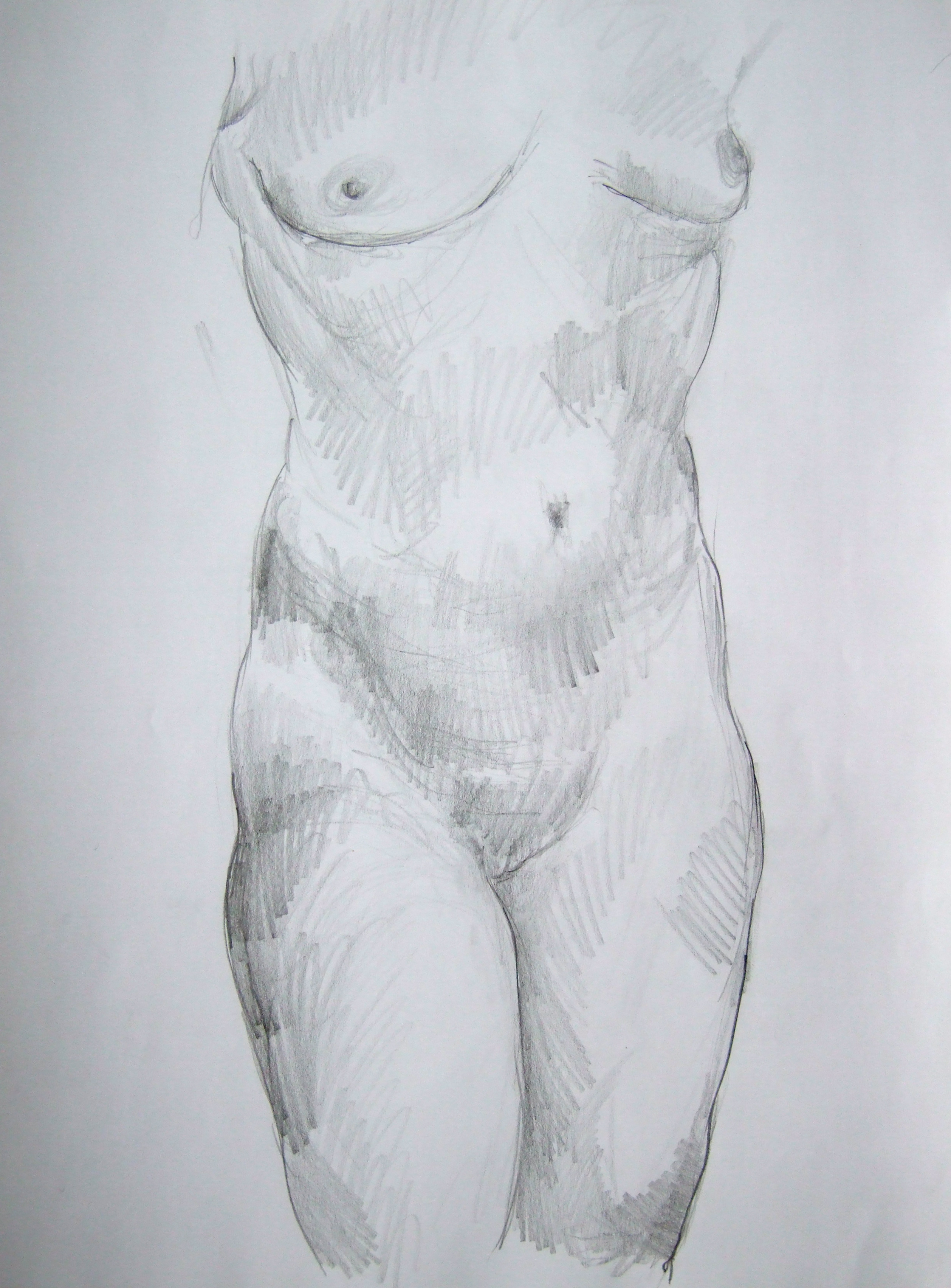 Vrouw Naakt Potlood Model Figuur Schets Staand Frontaal Studie