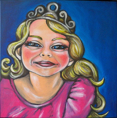 Dit schilderij met een stralend prinsesje is onderdeel van de serie 'You can be what you want to be' waarin vrolijke kinderen in verschillende 'verkleedsituaties' worden afgebeeld. Het schilderij is geschilderd op doek met acrylverf. In het kroontje is wat glitter verwerkt. Het schilderij zelf meet 50 x 50 cm en zit in een mooie houten oud-zilveren baklijst. Ook heel leuk voor in een kinderkamer!