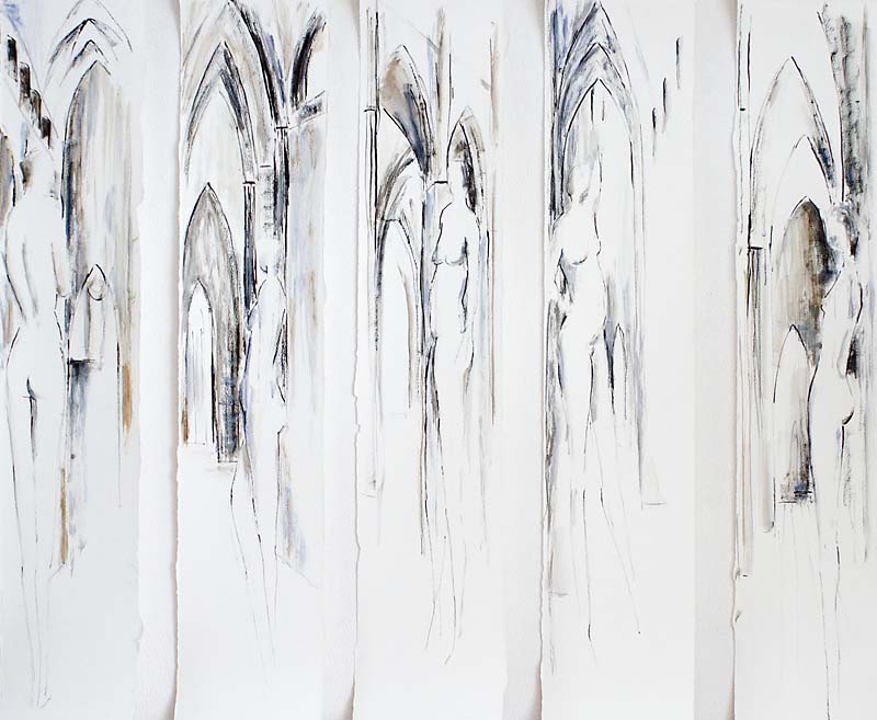 Vijfluik, 5 x 100 x 20 cm, acryl, inkt, krijt op papier