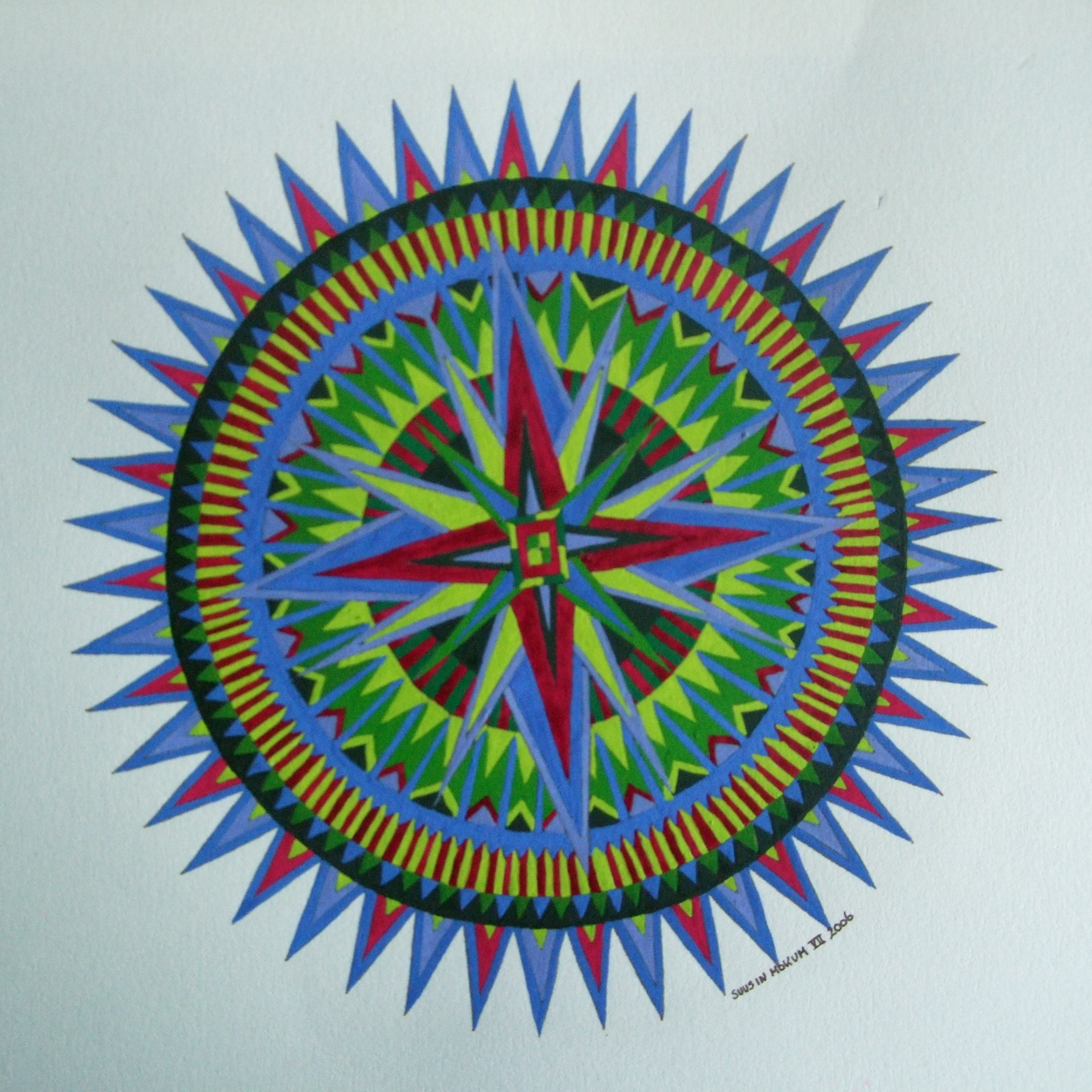 Blauw Groen Gouache Inkt Patroon Cirkel Mozaïek Mandala Magenta Pentekening Geelgroen