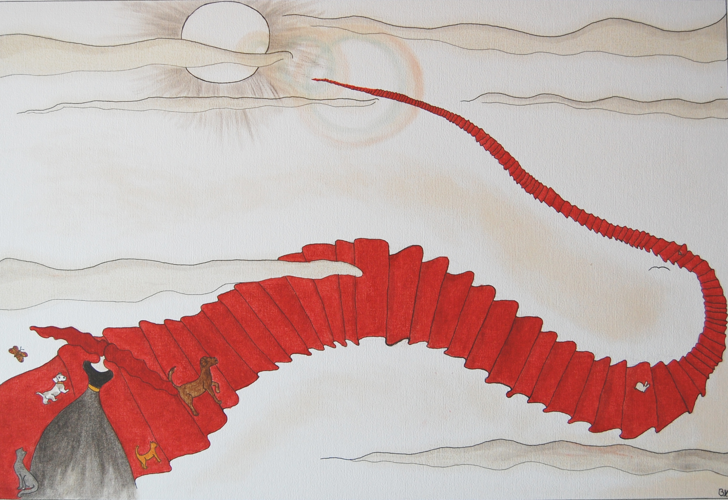 Dit schilderij heb ik speciaal gemaakt voor mijn schoonmoeder. Zij wilde een schilderij van een consept over een hiernamaals voor huisdieren Dat was dan een regenboog brug die de dieren naar de andere kant zou brengen. Ik heb hieraan mijn eigen interpetatie gegeven.