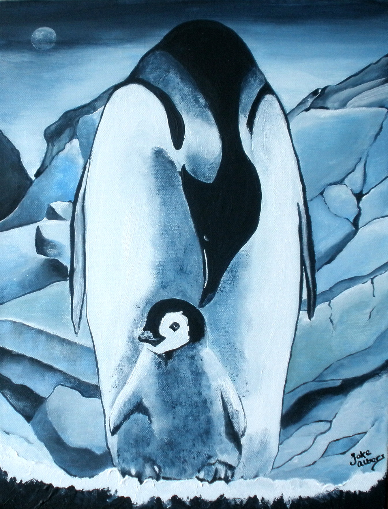 Sneeuw Nacht Koud Moeder Ijs Jong Pinquin