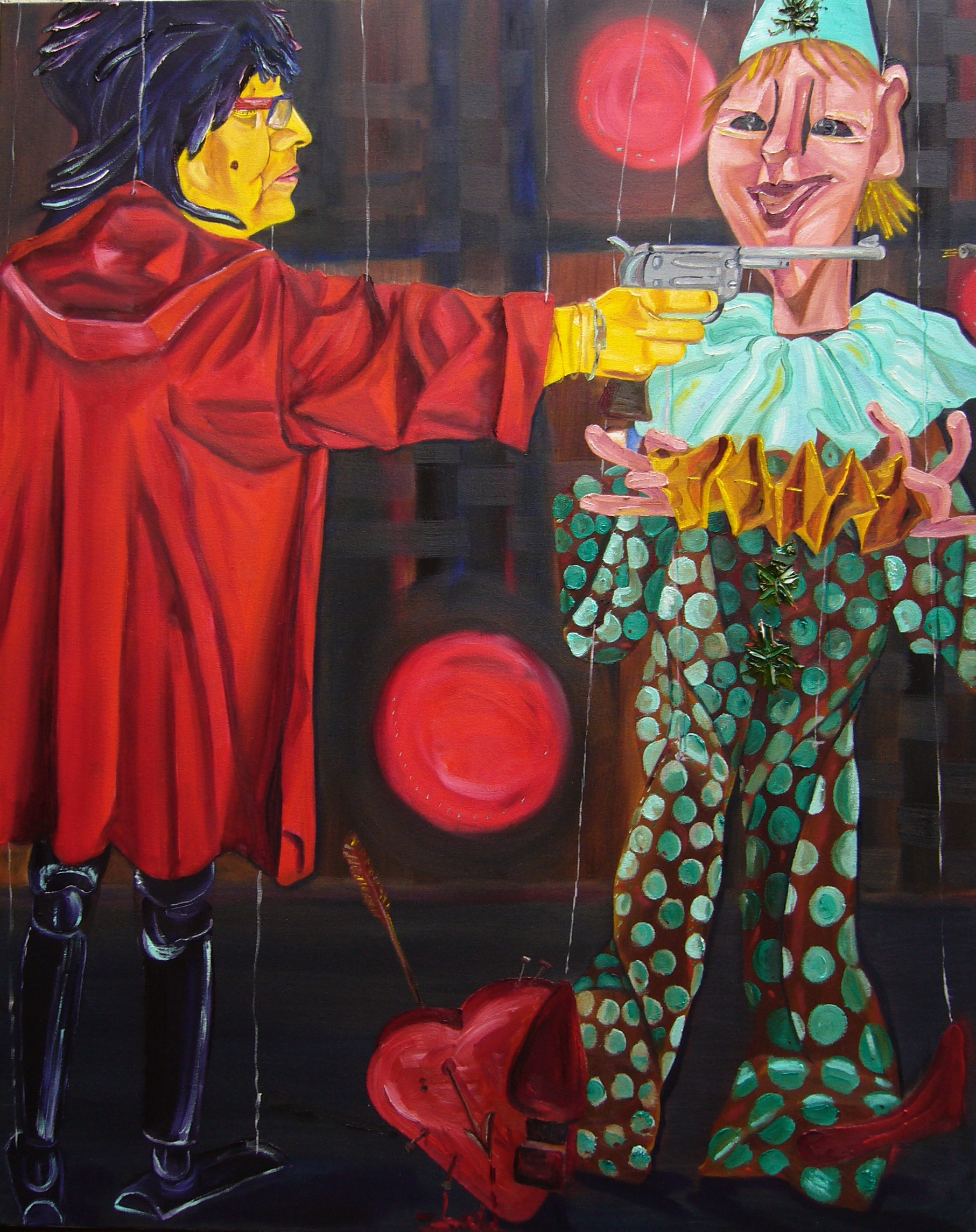 Rood Hart Kleuren Kleurrijk Olieverf Serie Gebroken Verdriet Zelfportret Muziek Wraak Bibliotheek Geweld Boosheid Pistool Naief Harmonica Reeks Vragen Marionet Kogel Bouman Marionetten Expostie Berthilde
