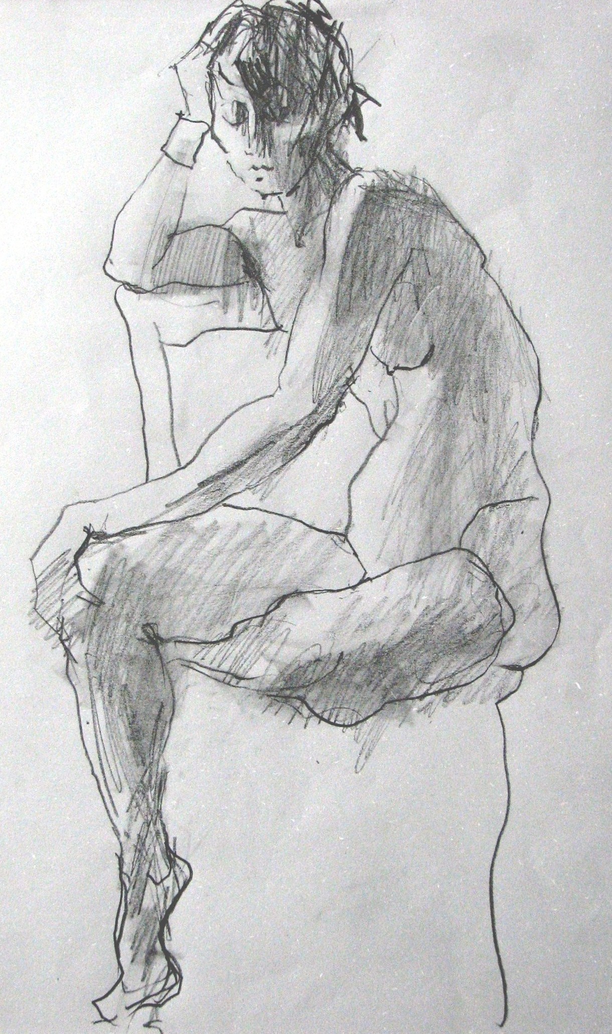 zittend vrouwelijk naakt (potlood op grijs papier)