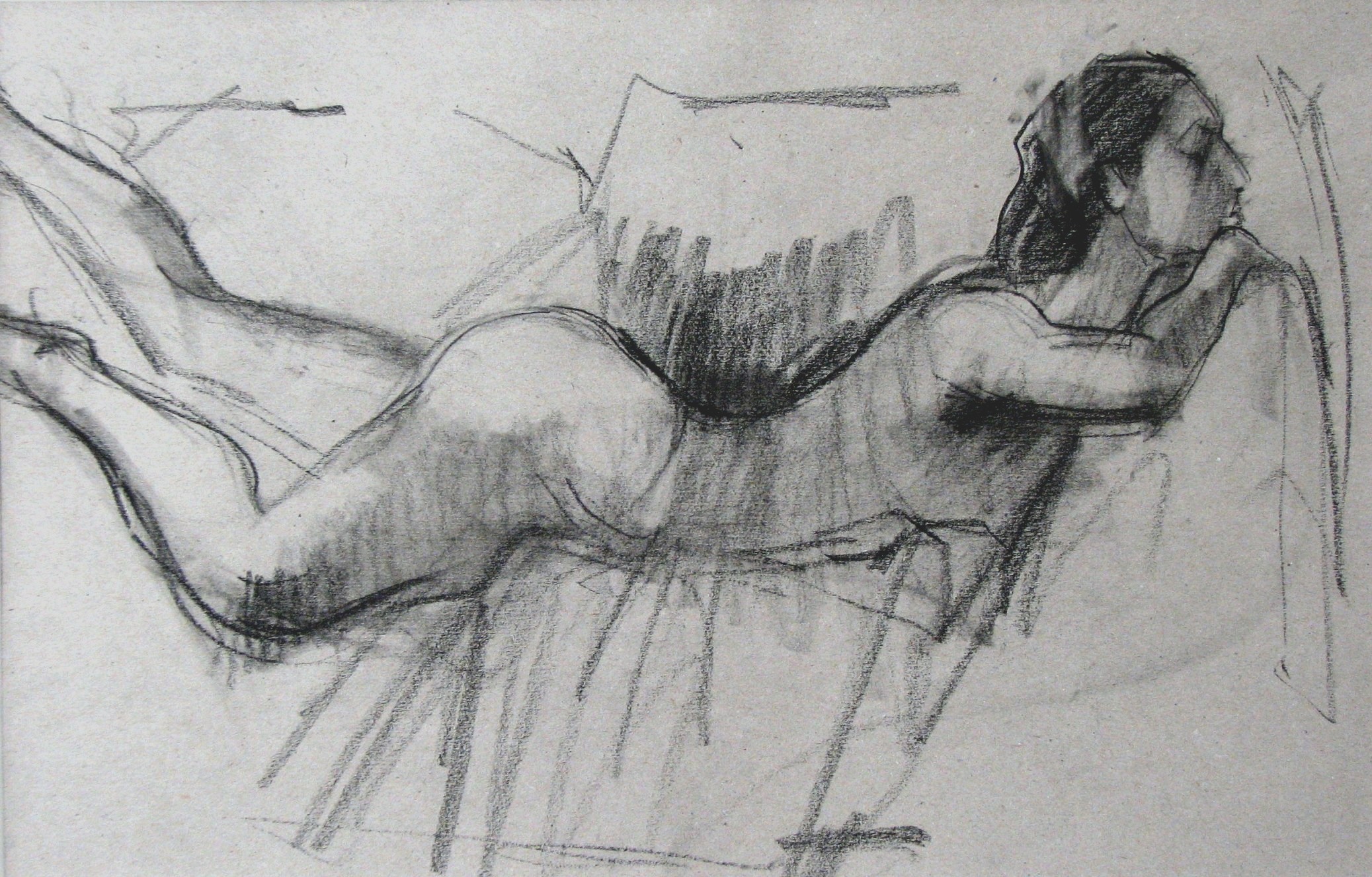 Liggend vrouwelijk naakt (krijt op grijs papier)