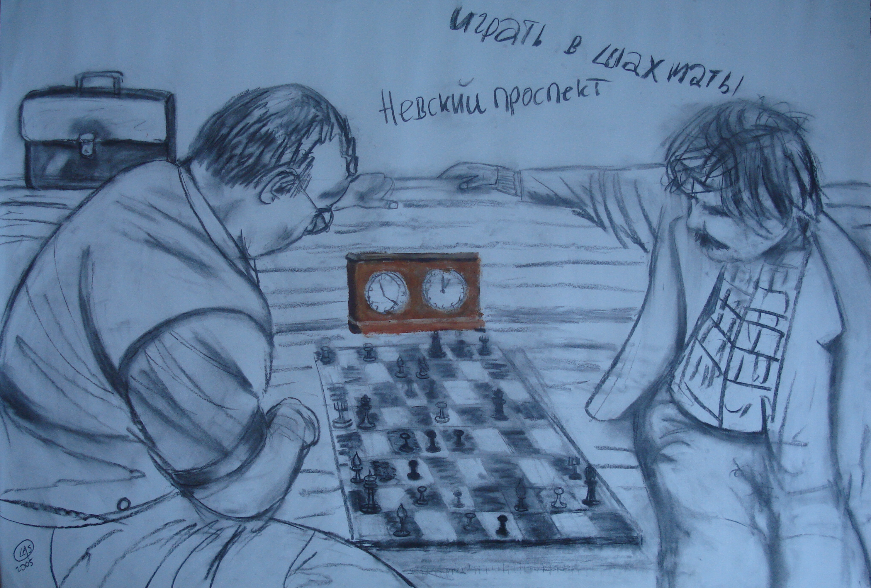 Schets Houtskool Paard Koningin Koning Park Toren Schaken Pion Schaak Rusland Sketch Croquis Fusain Nevsky Prospect Charbon