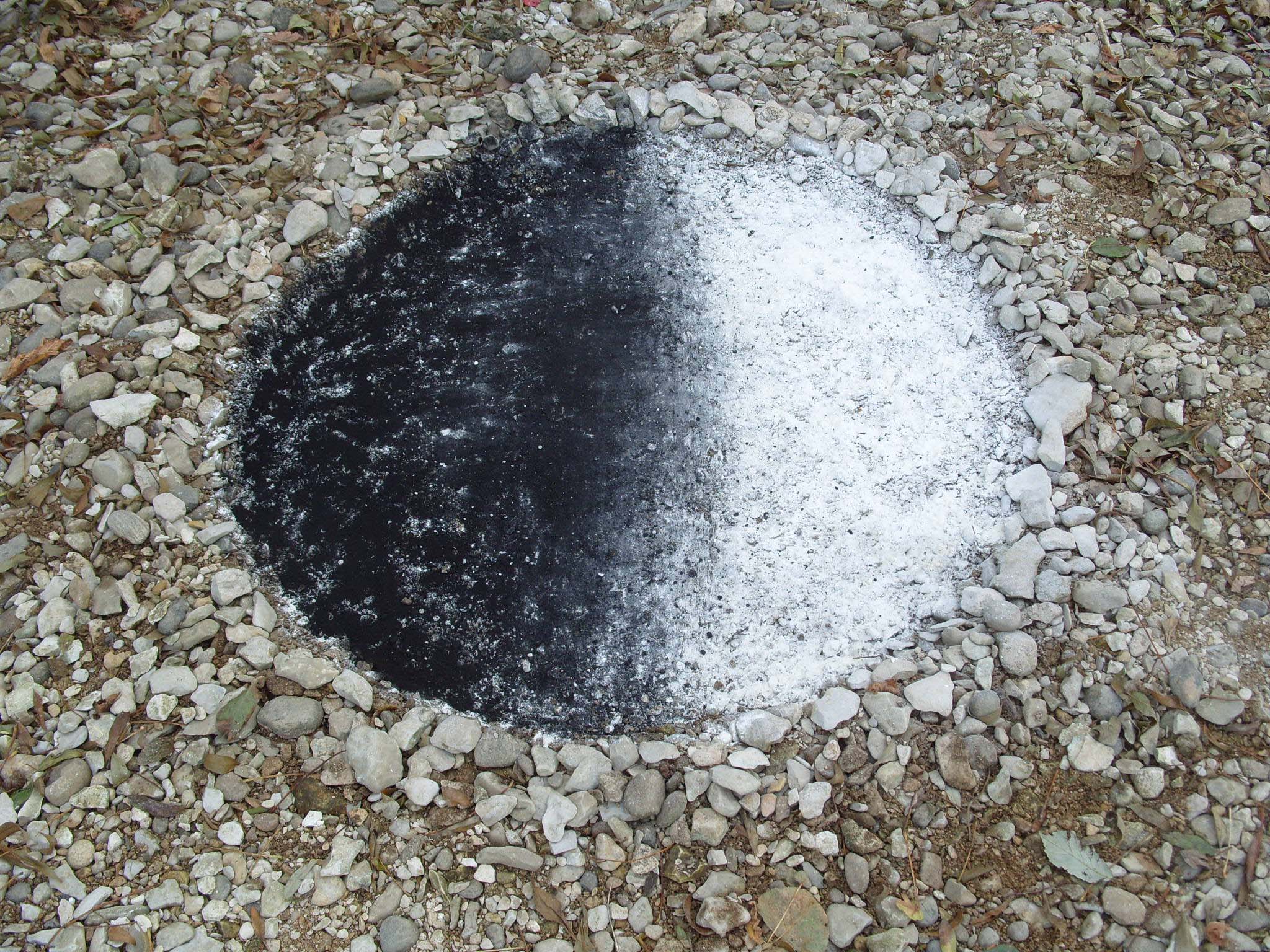 Van geen naar halve naar volle maan. Gipspoeder en ijzererts en stenen aan de oever van de rivier.