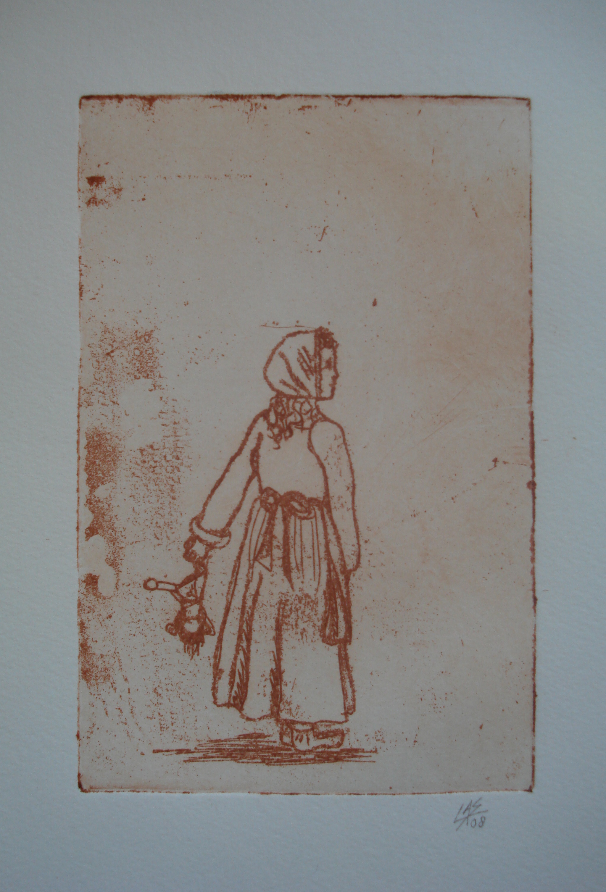 Girl Drawing Bretagne Etching Morbihan Pont Fille Breizh Brittanny Aven