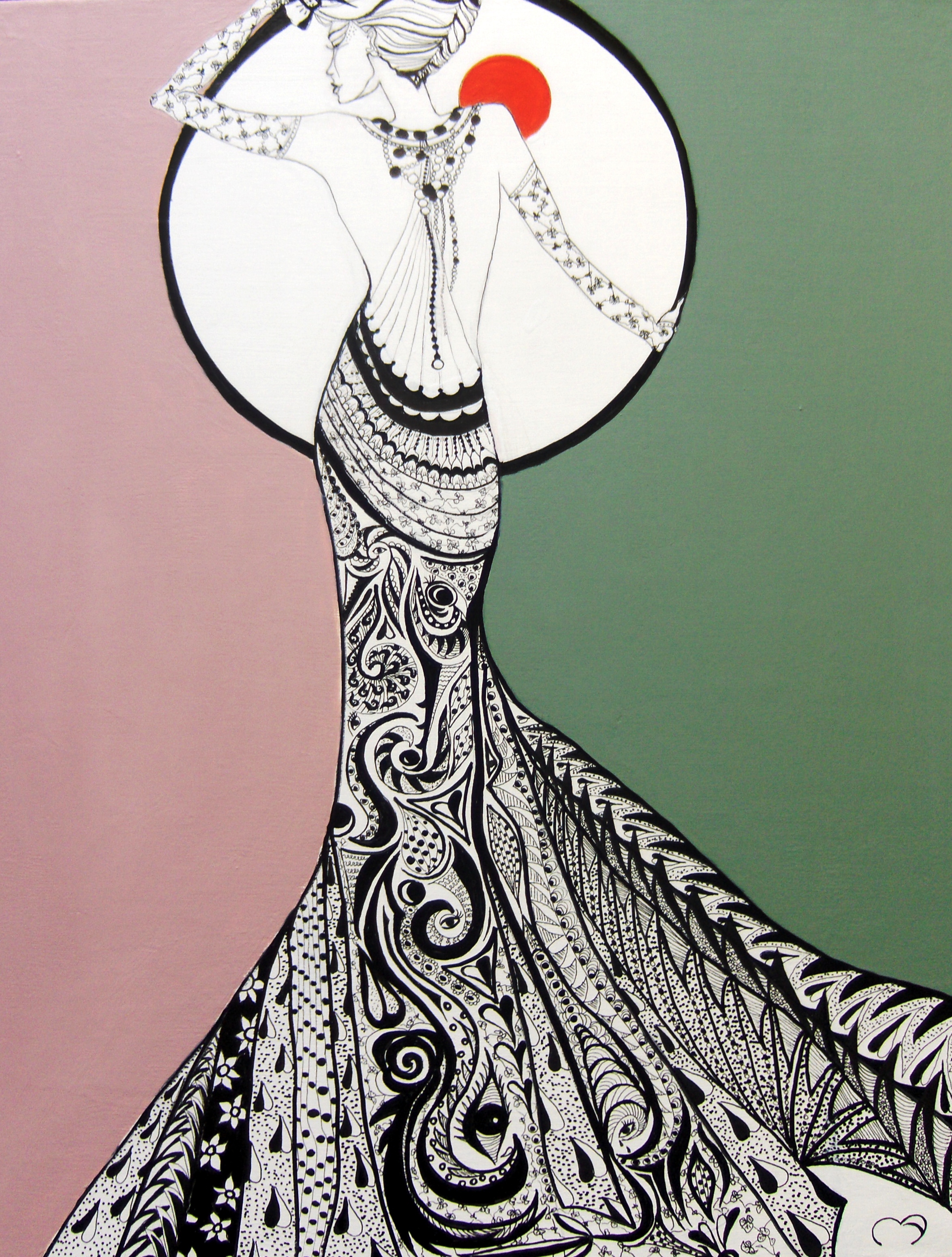 Acryl Vrouw Art Grafisch Mode Nouveau Fashion Pentekening