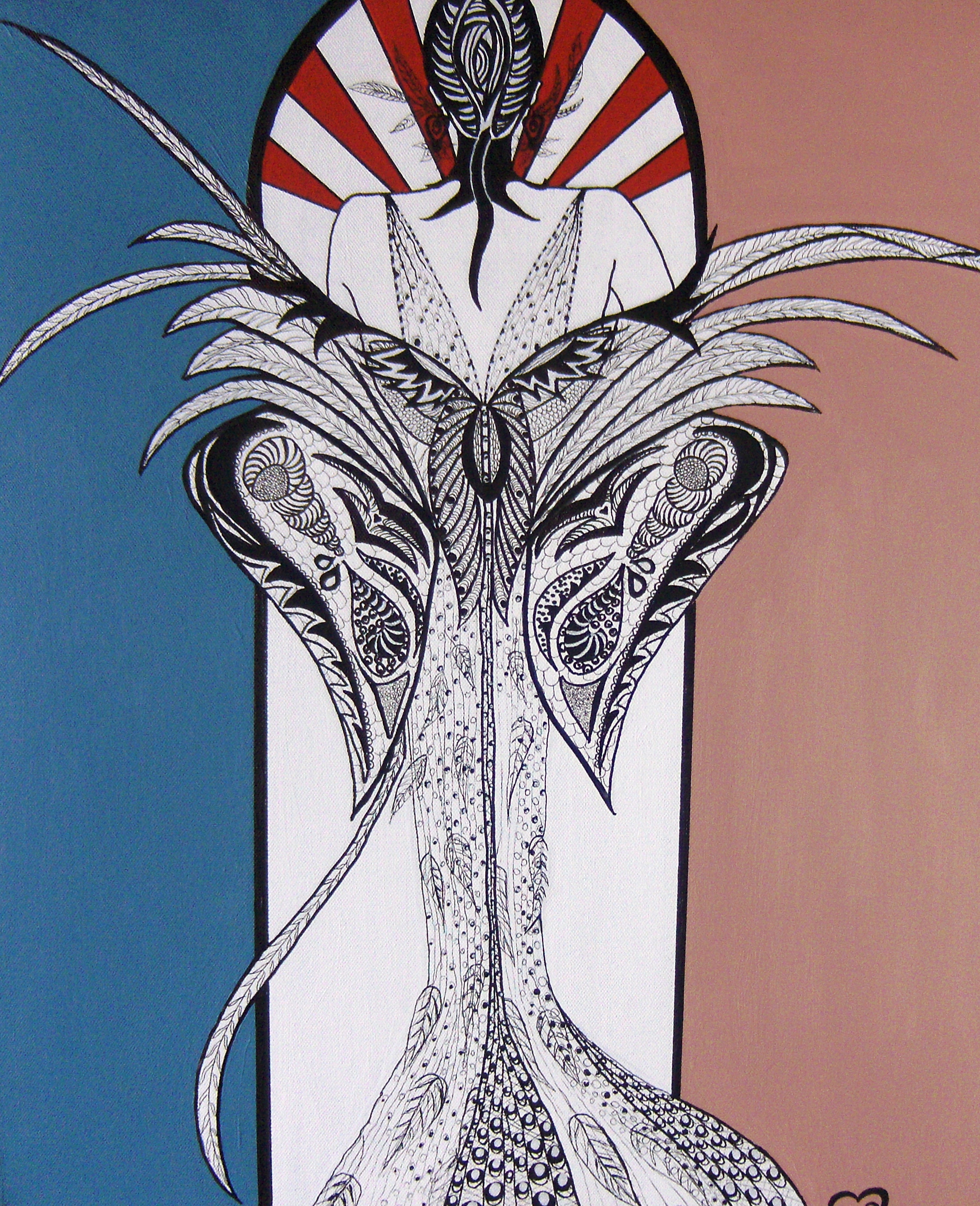 Acryl Vrouw Art Grafisch Mode Nouveau Fashion Pentekening