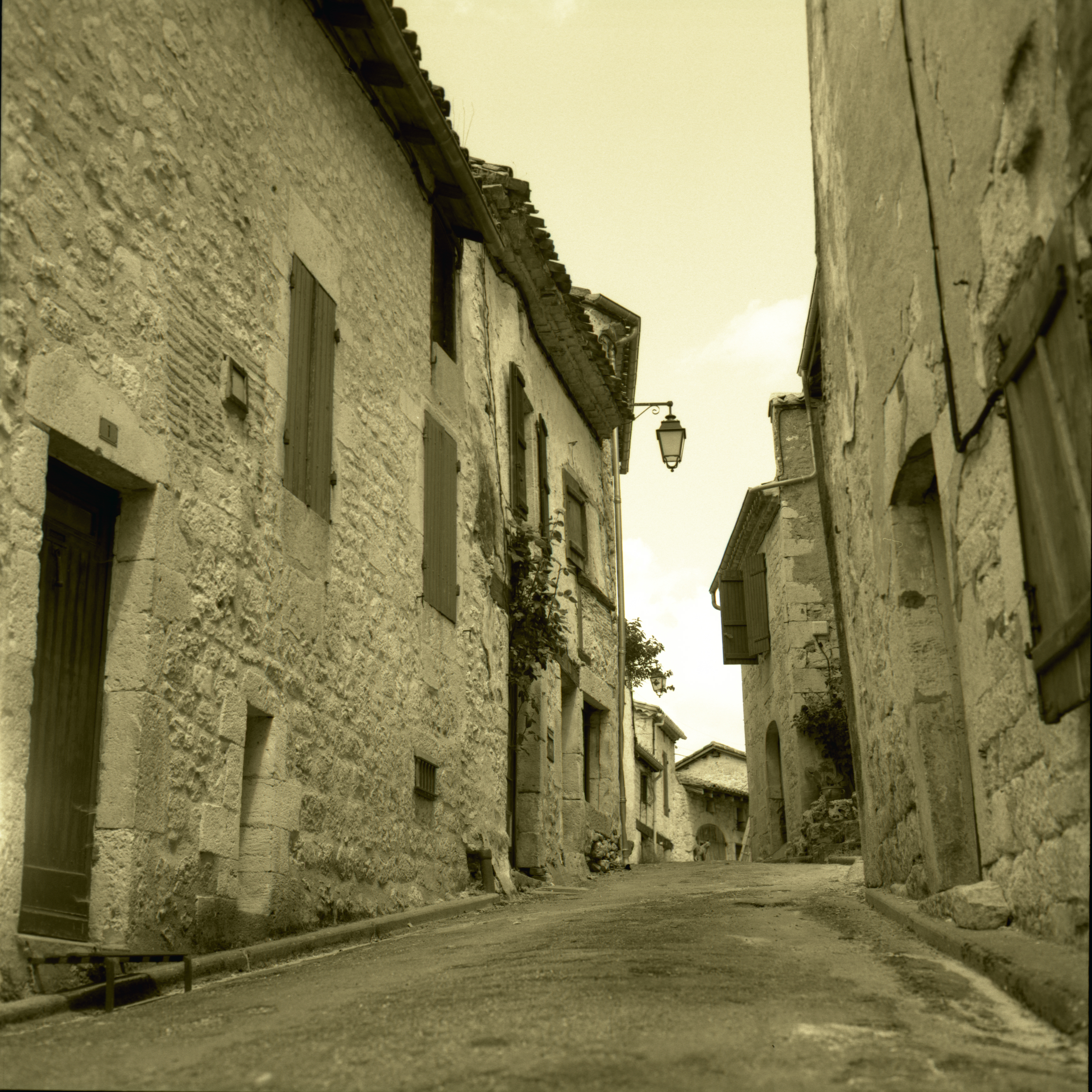 Verlaten straatje in oud dorpje in Zuid Frankrijk C-print op 1.5 mm aluminium voorzien van ophangsysteem. Tegen meerprijs ook beschikbaar als Plex-photo