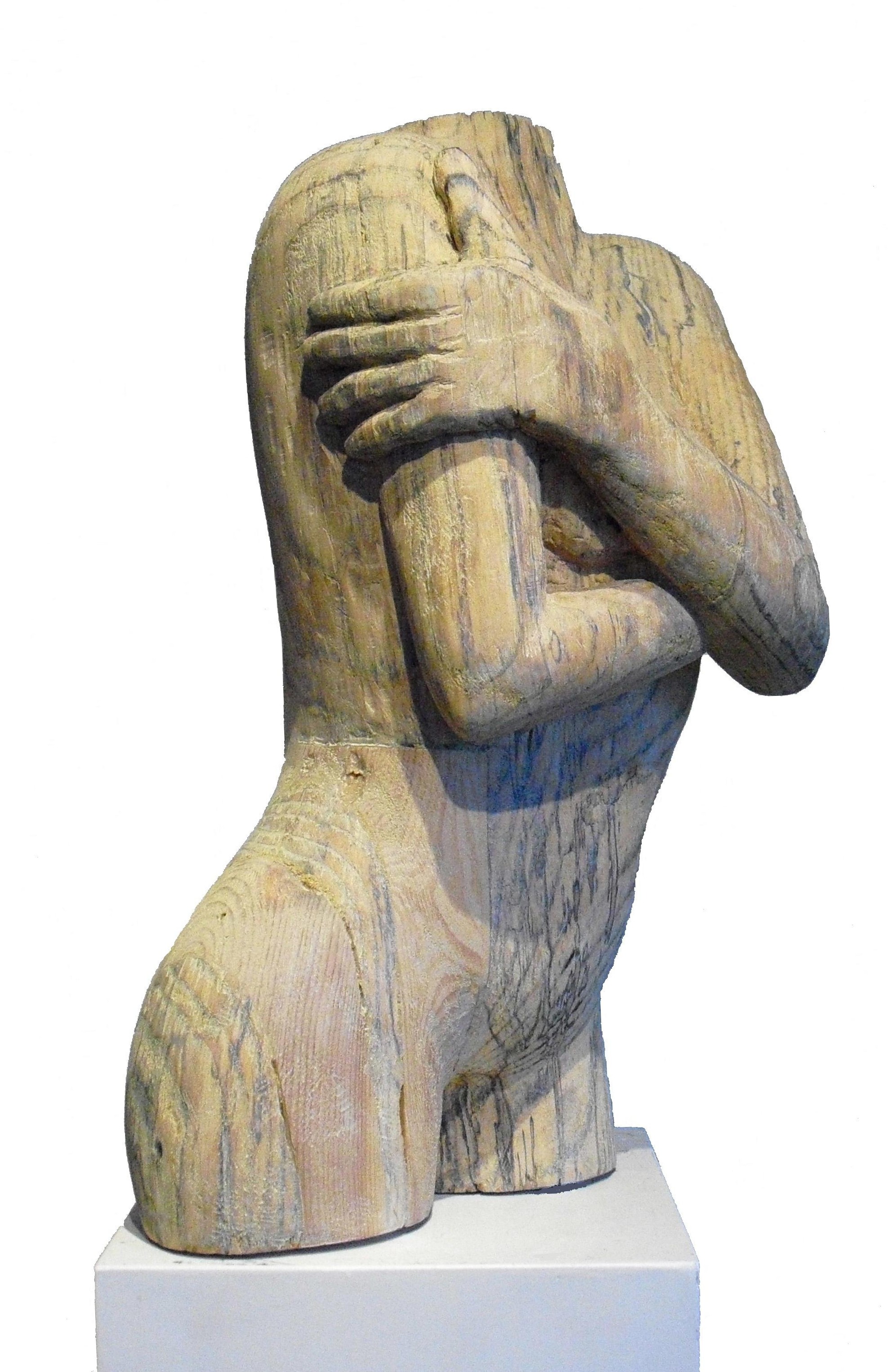 Beeldentaal in hout en steen, realistisch vanuit het gevoel, bedoeld om aan te raken.