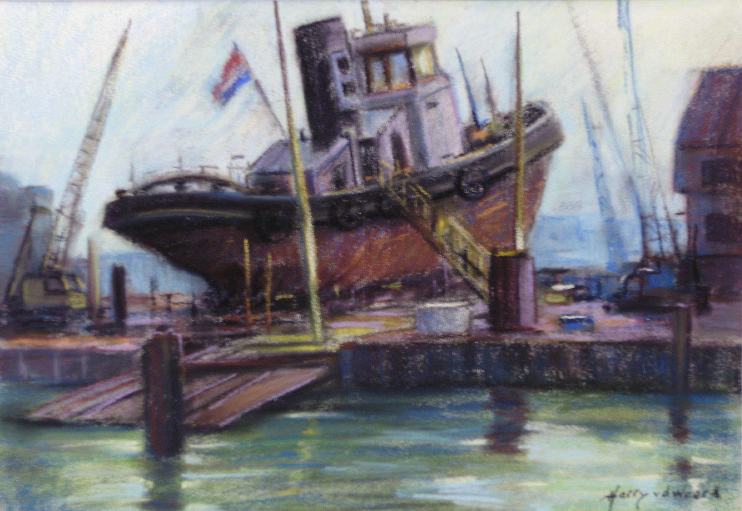 Ook dit schilderij geeft weer waarom de haven voor mij een inspiratiebron is
