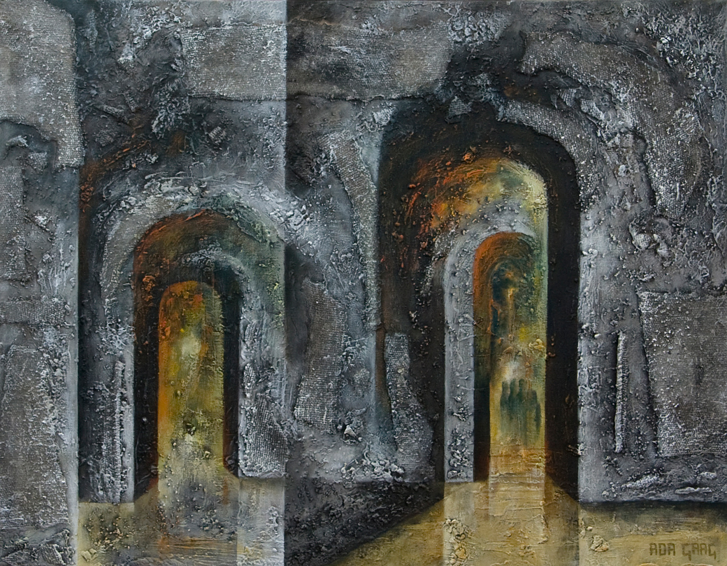 Grijs Oranje Geel Mystiek Kerk Ruw Gebouw Muur Ingang Muren Poort Doorgang Verweerd