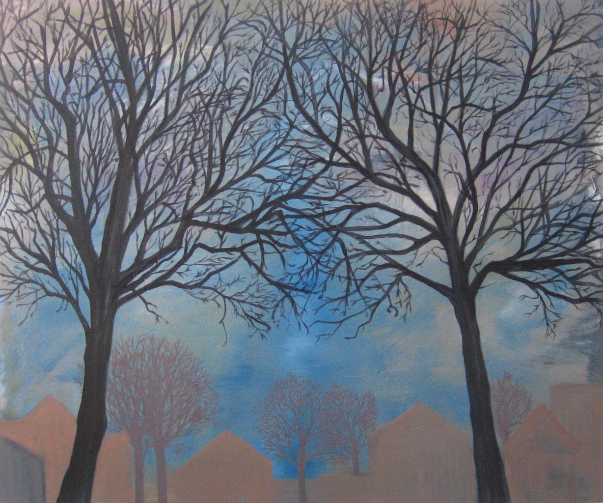 Bomen Winter Dorp Kaalheid Natuur Landschap Olieverf