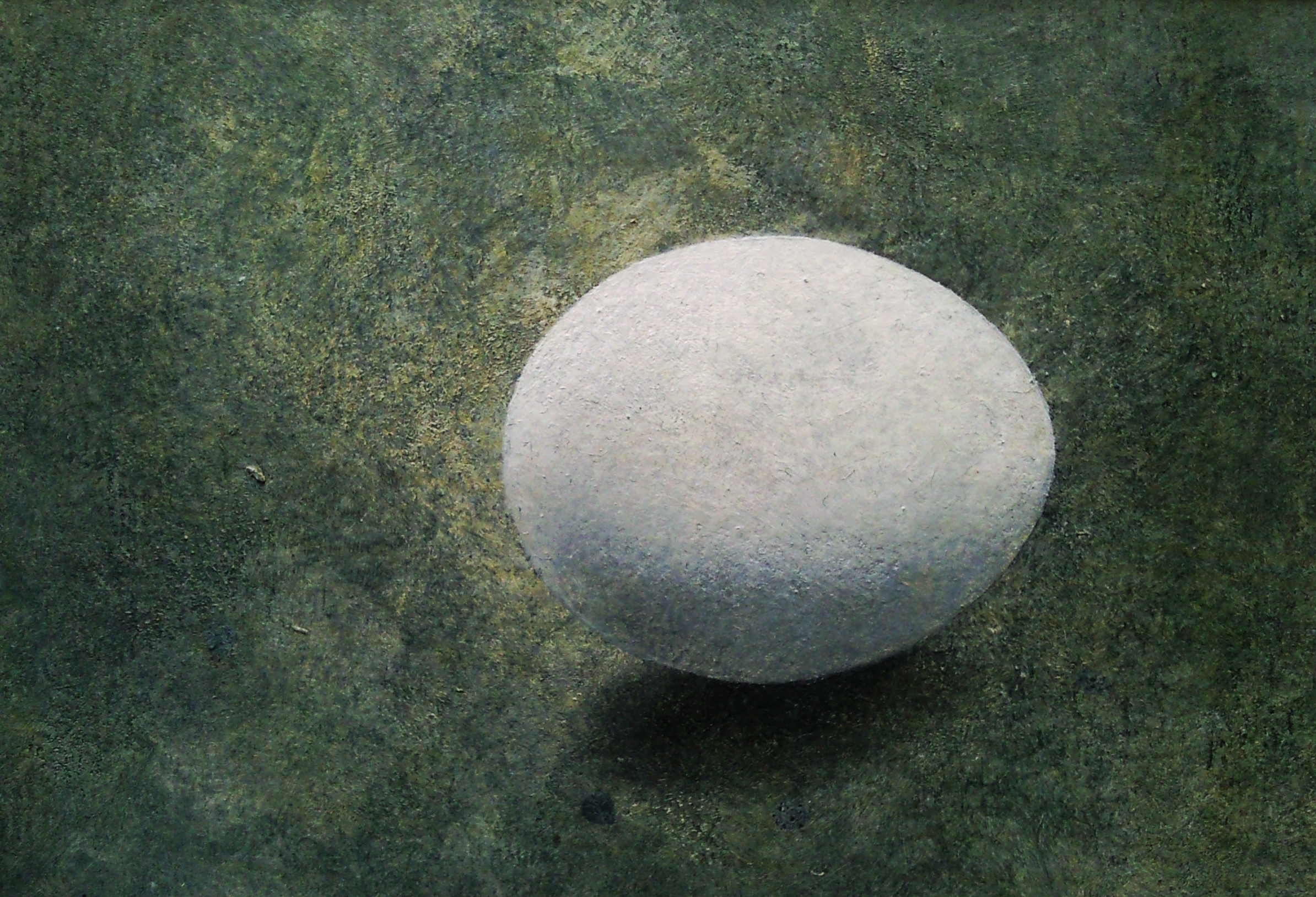 Een van de eindeloze reeks eieren die we schilderden als kennismaking met nieuwe materialen.Dit ei is met alkyd geschilderd.