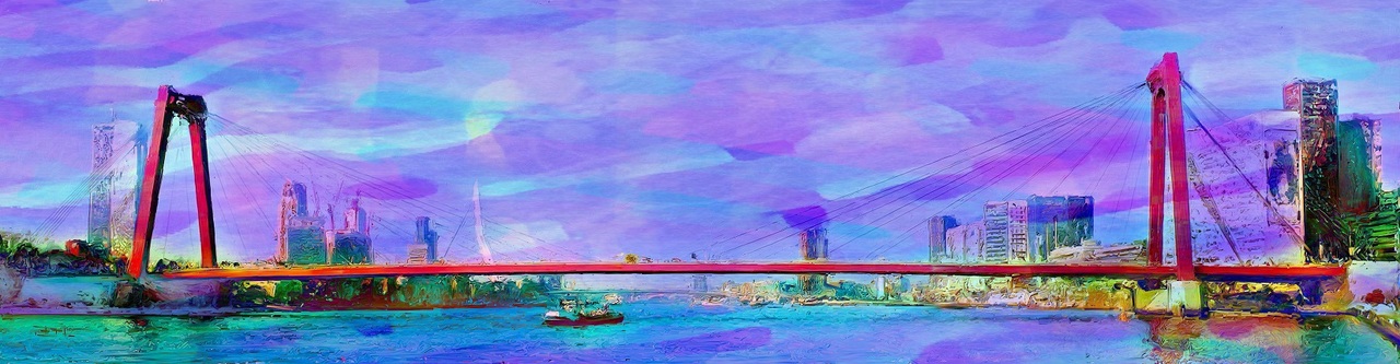 Rotterdam Haven Felle Kleuren Digitaal Giclee Nederland Print Figuratief