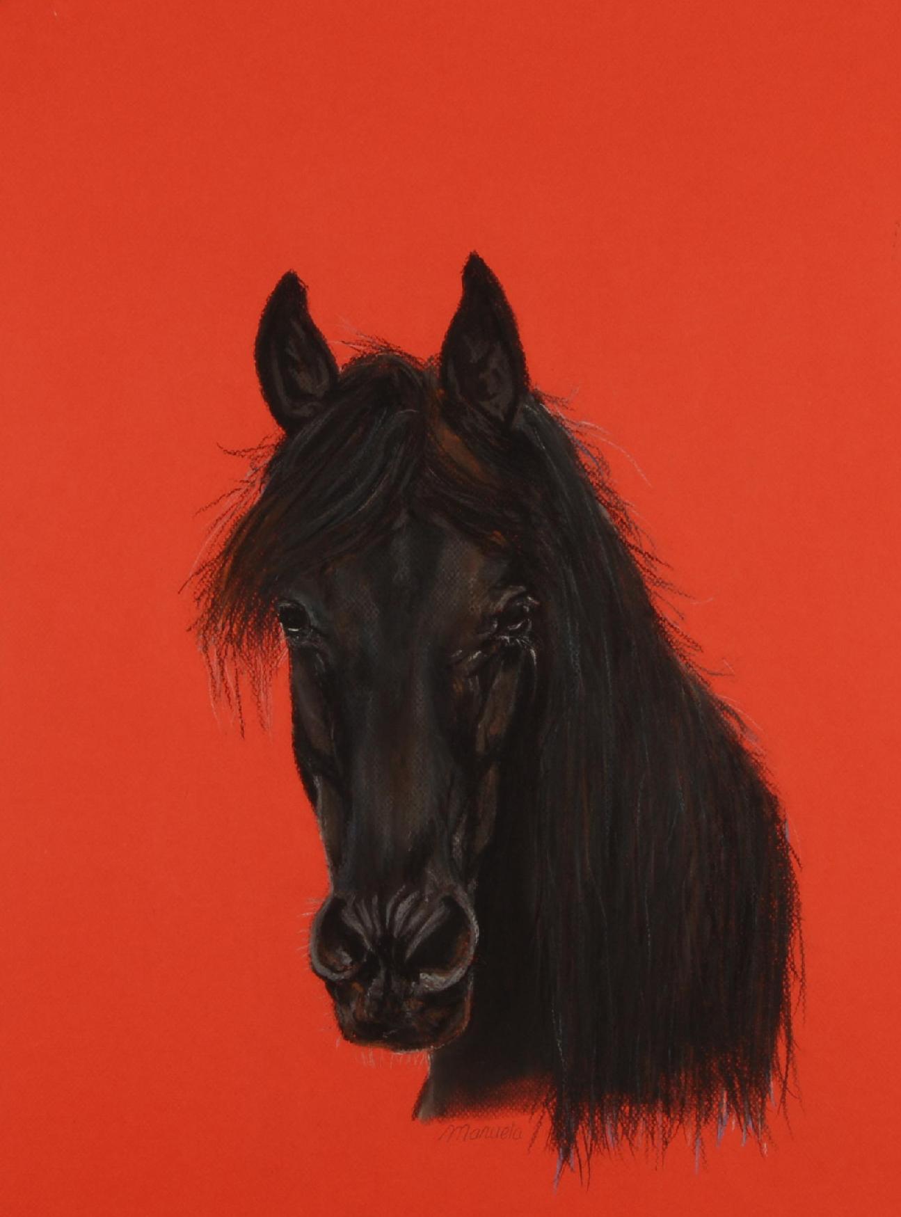 Zwart Tekening Pastel Paarden Paard Pastelkrijt Hengst Merrie Friese Friesche Ruin