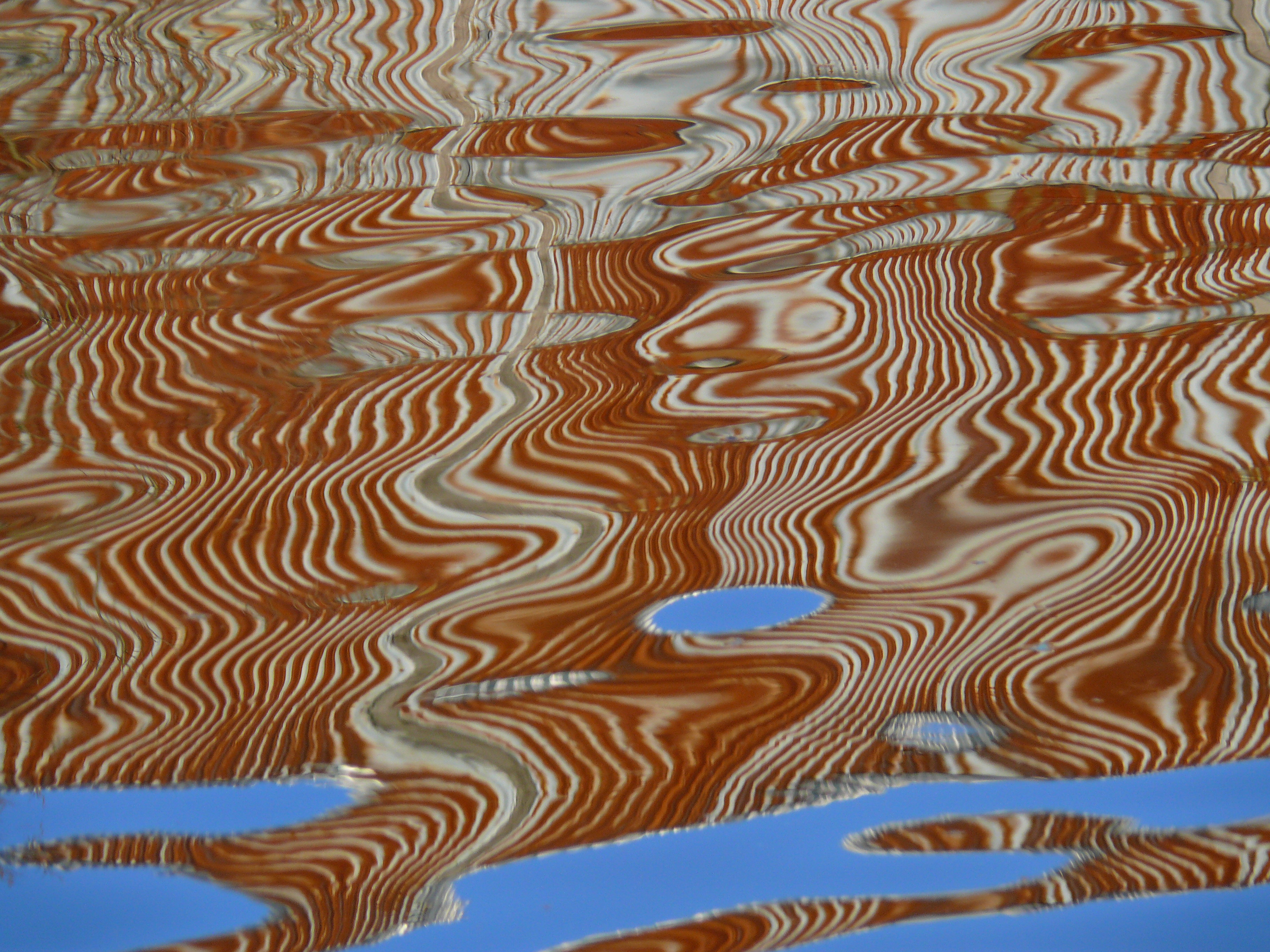 Een geheimzinnig lijnenspel van de magische spiegel in bruin en wit met blauwe vlekken.
