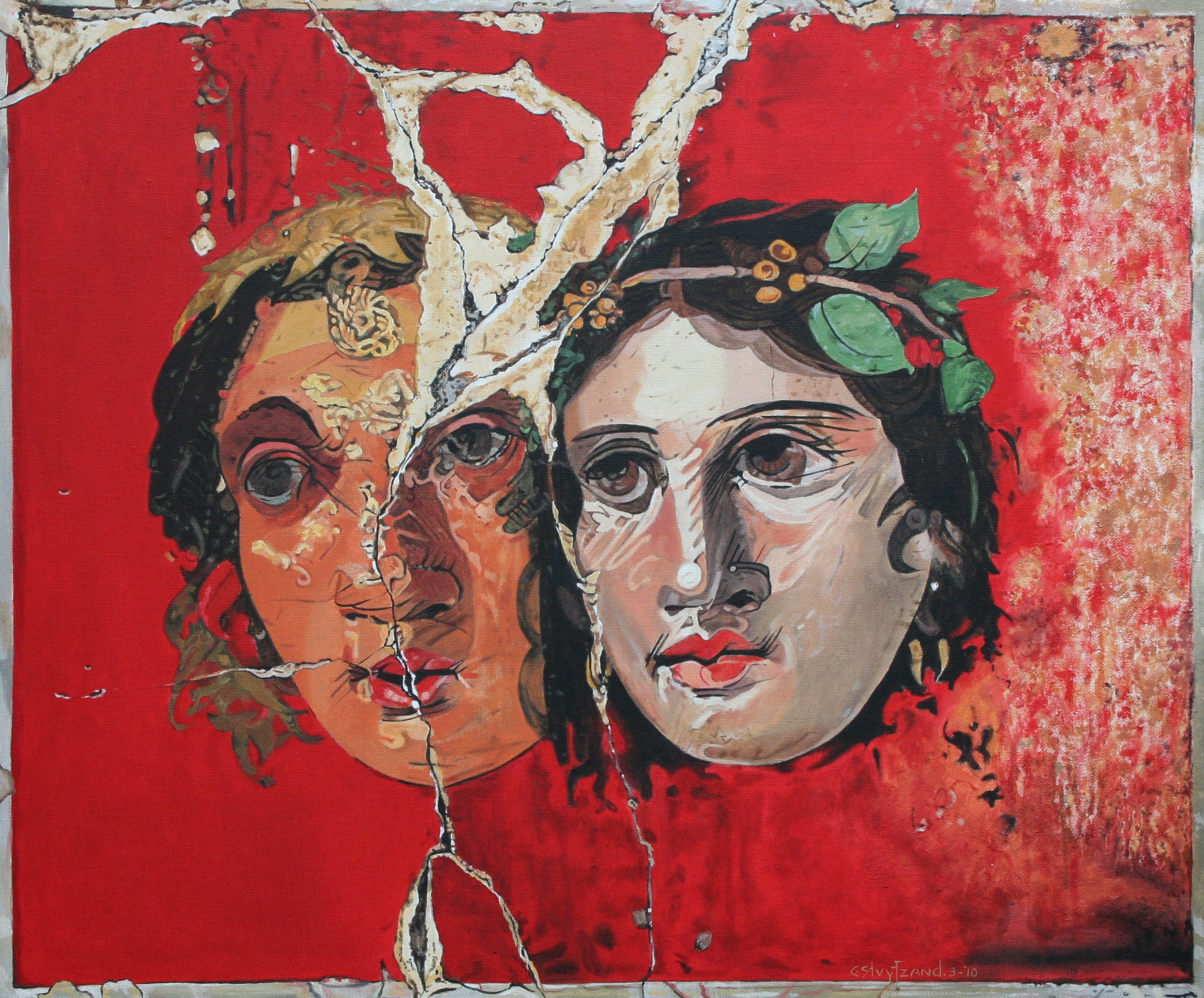 Rood Realistisch Olieverf Oilpaint Red Maskers Realistic Fresco Dionysische
