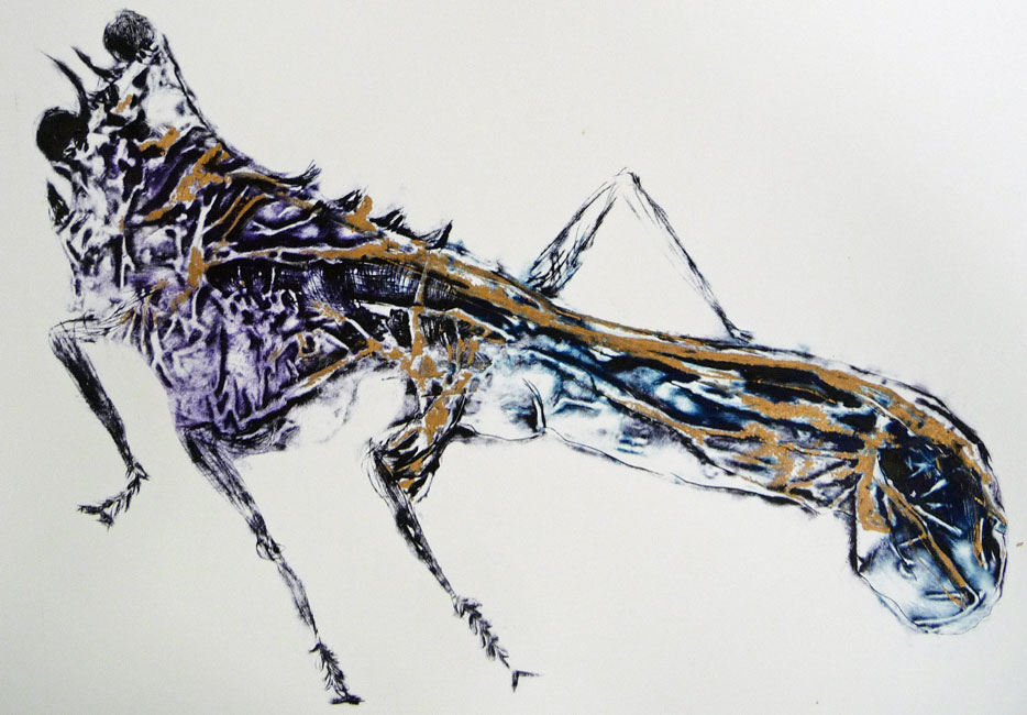 Collagraph Drypoint Droge Naald Insect Kleurrijk Grafiek