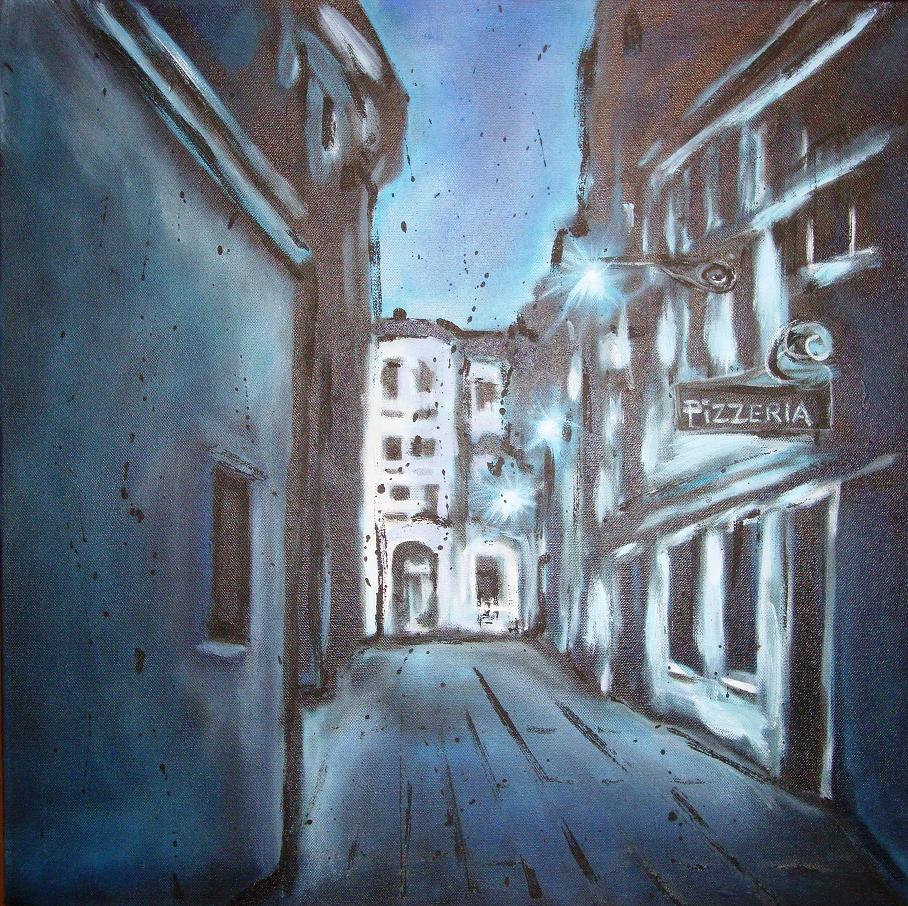 Pittoreske straattaferelen in impressionistische stijl.