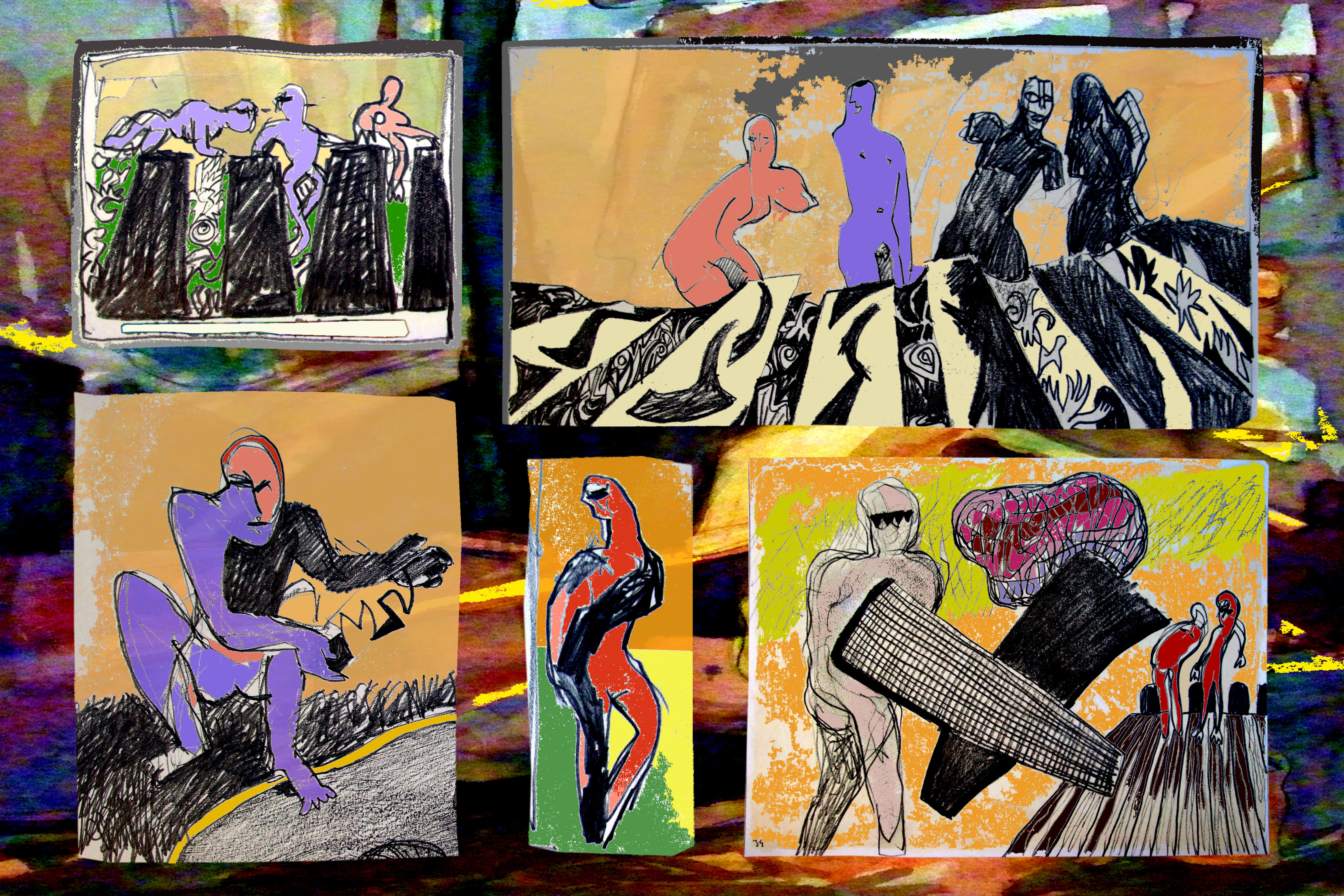 Playground earth Digitale collage van fragmenten van tekeningen, schilderijen en grafiek gedrukt op 310 grs. Hahnemühle Fine Art papier. Andere formaten mogelijk