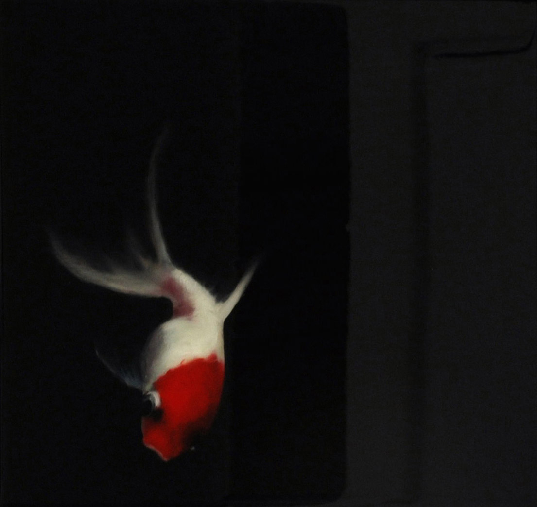 Detail uit Goldfish V omwille van presentatie. Olie op paneel en poly/pox