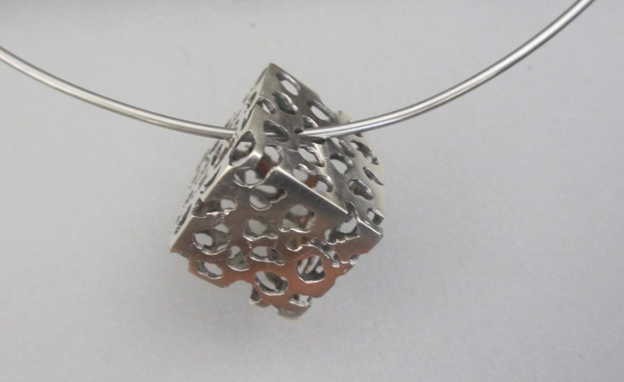 zilveren opengewerkte kubus met zilveren spang