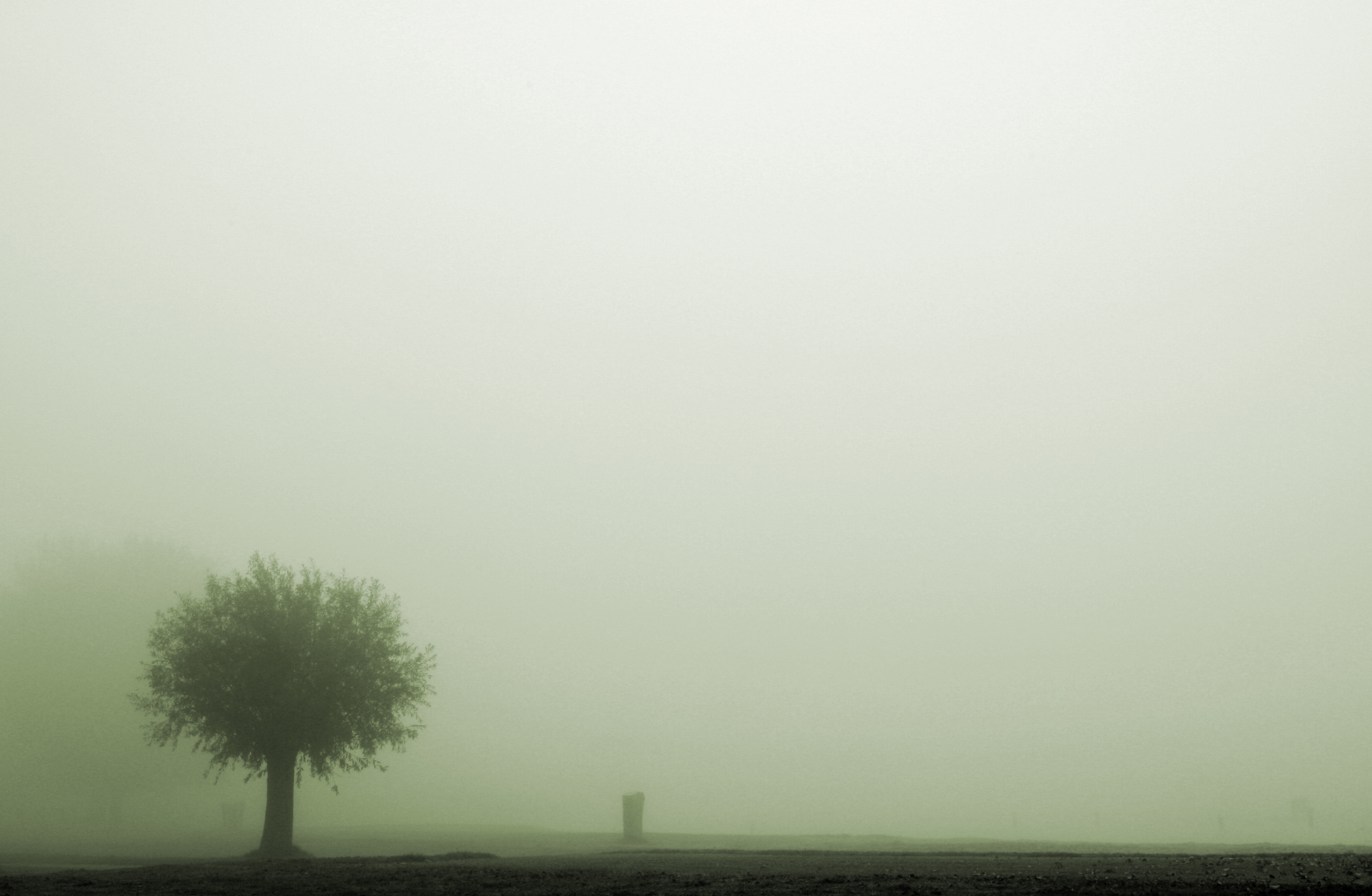 Boom in de mist op het recreatie eiland Koude Hoorn, Warmond