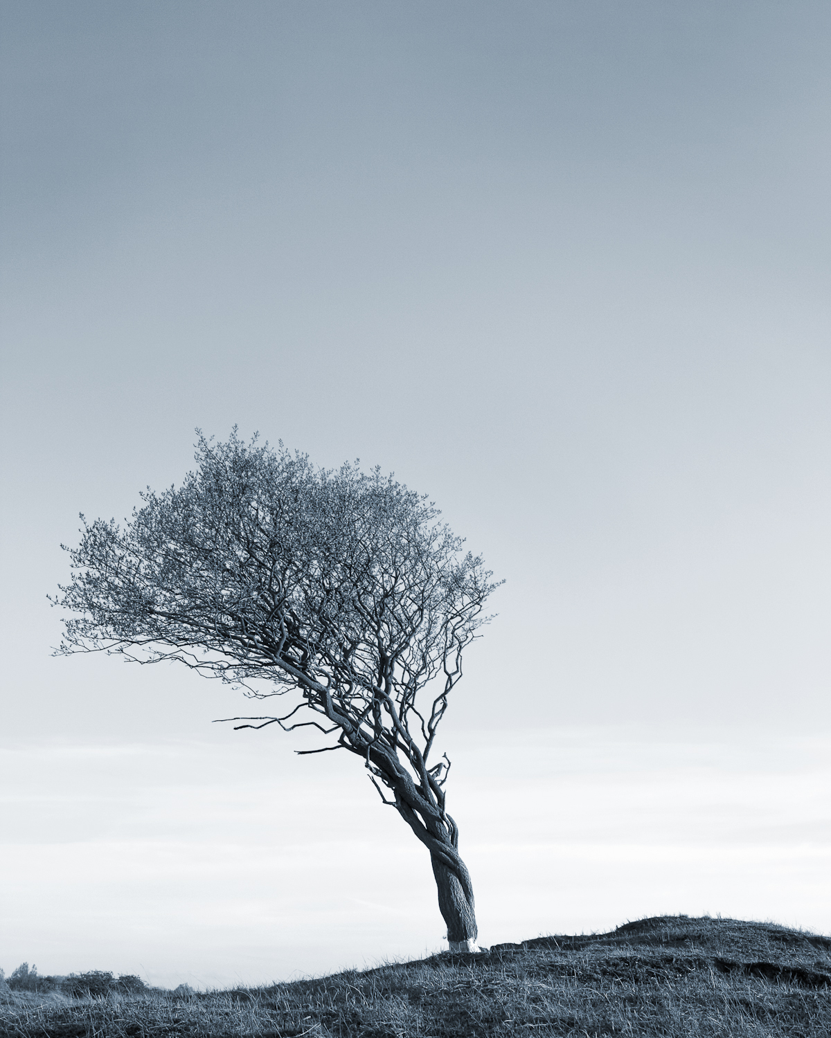 Cyaan-kleurige foto van een boom in de duinen bij Noordwijk