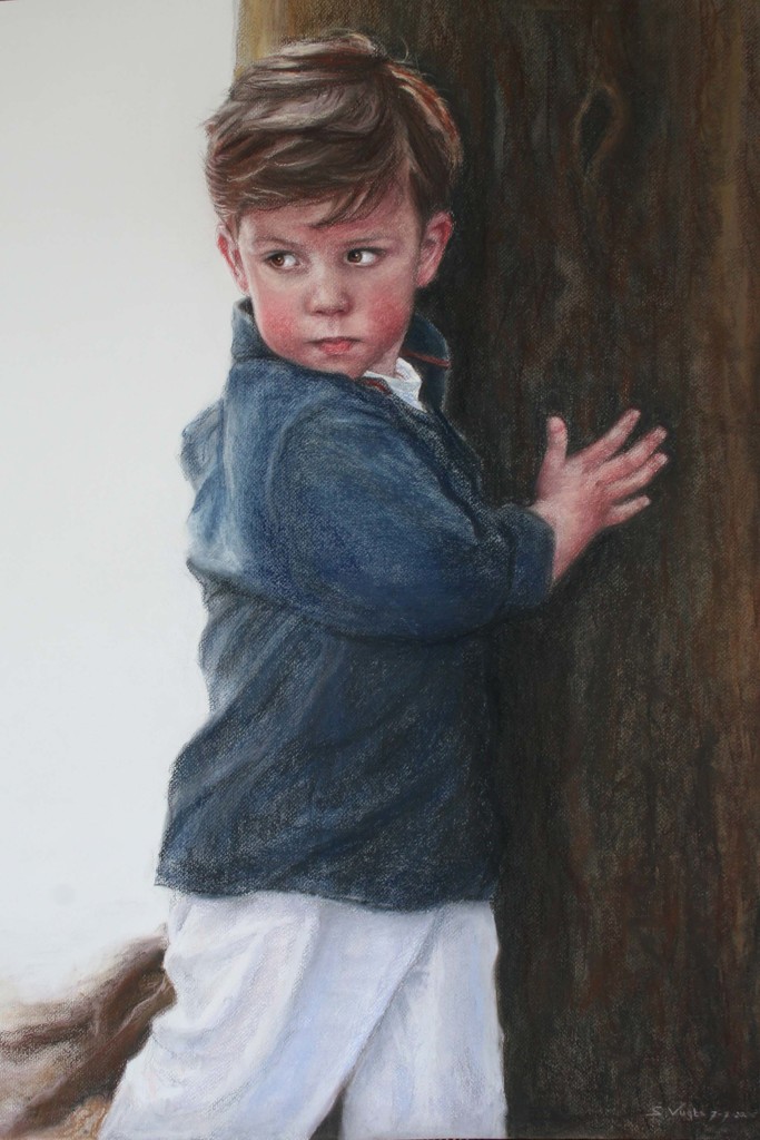 Het portret van Thomas is gemaakt naar een foto die de ouders geschilderd wilde hebben. Voor mij een moeilijke klus omdat ik altijd een fotoshoot doe bij aanvang van een opdracht.