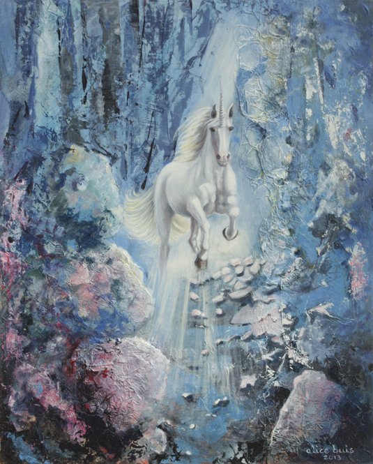 De Eenhoorn bevrijd van alle materie is vrij en roept je om mee te gaan.