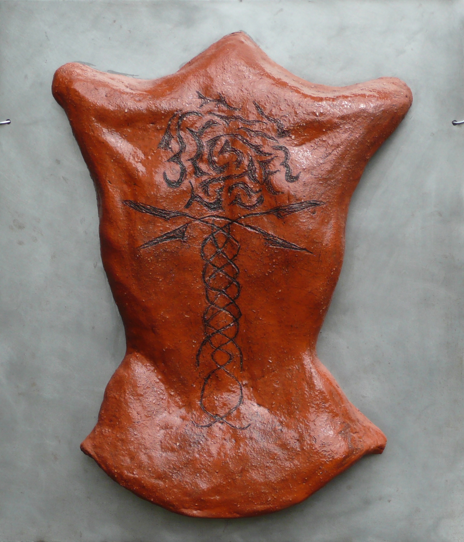 Ik maak torso's, ik versier de huid met tattoo's, kijk onder de huid naar spieren, en wat er over die huid gedragen kan worden. Iedere verandering, roept direkt een indruk op, over de persoon achter de torso. Diverse materialen, keramiek, metaal.