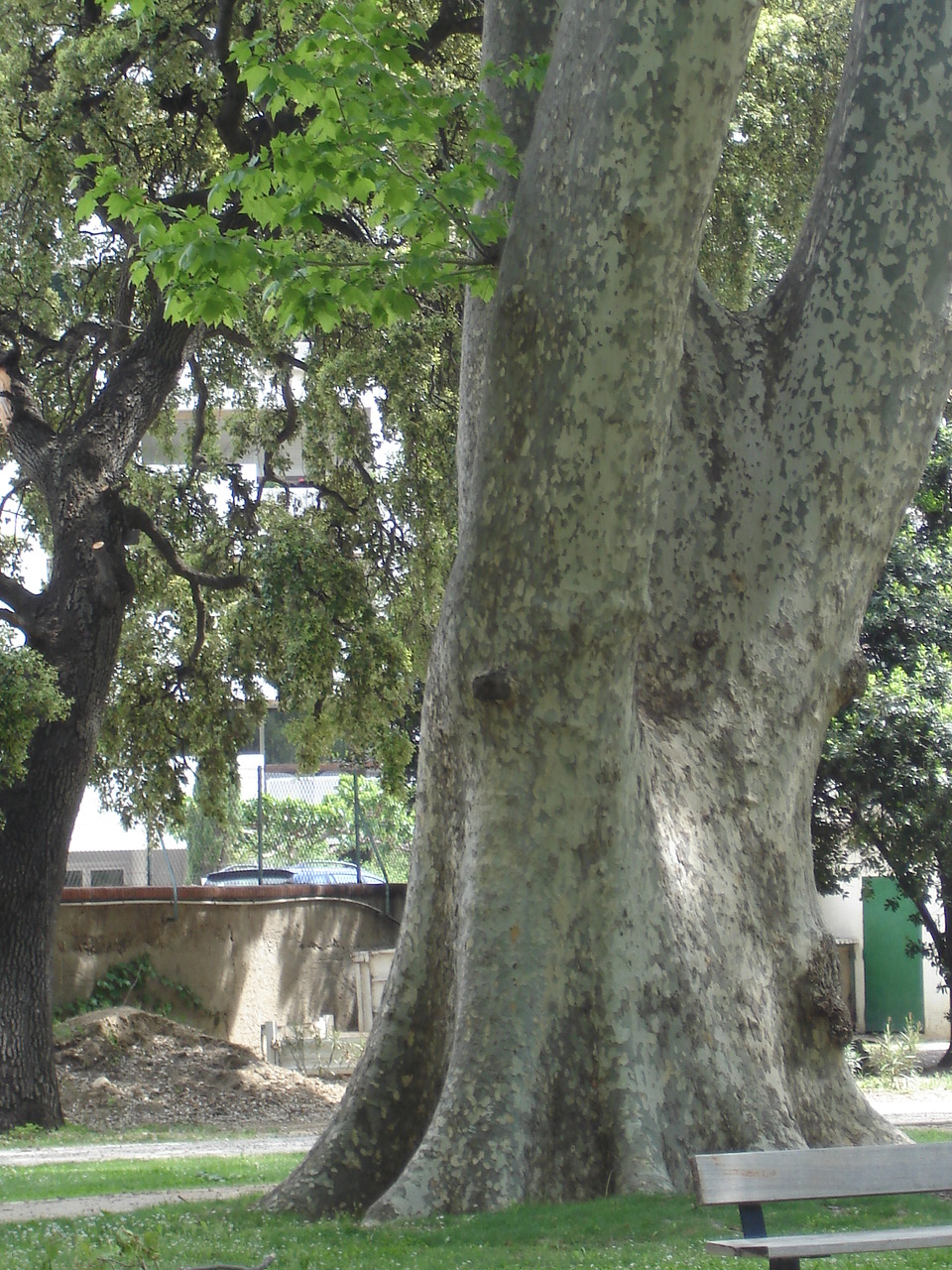 Een megaplataan in een park.
