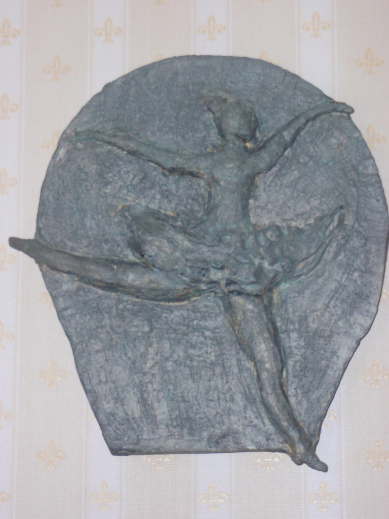 Dans Vrouw Wandbord Wandobject Vrouwelijk Beweging Steen Klei Groen Brons Gekleurd Goud