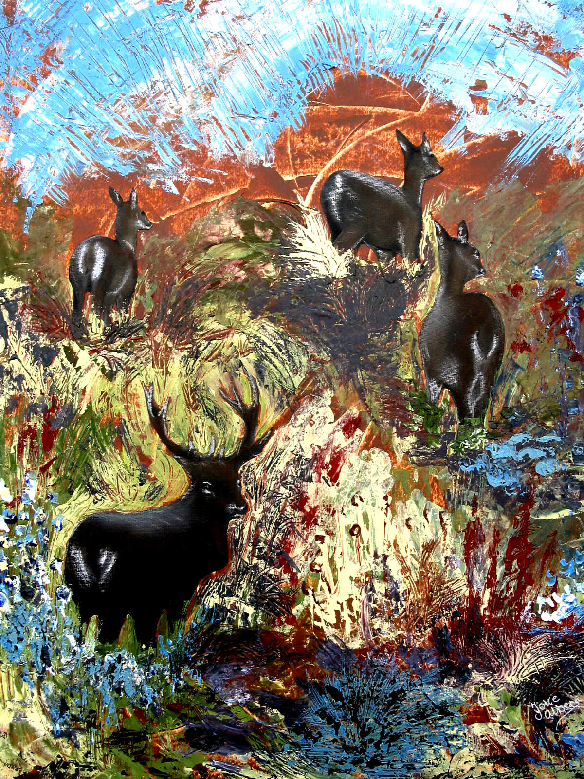 Kenmerkend is de spontaniteit in compositie en sferen met gevoel voor details, coloriet en eigen denkbeeld. Groot gevoel voor intense kleuren waarbij zij met penseel en paletmes harmonieuze streken tot leven brengt.